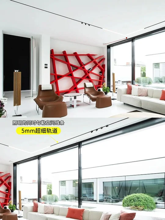 而FLOS在客厅用了5mm极细的轨道