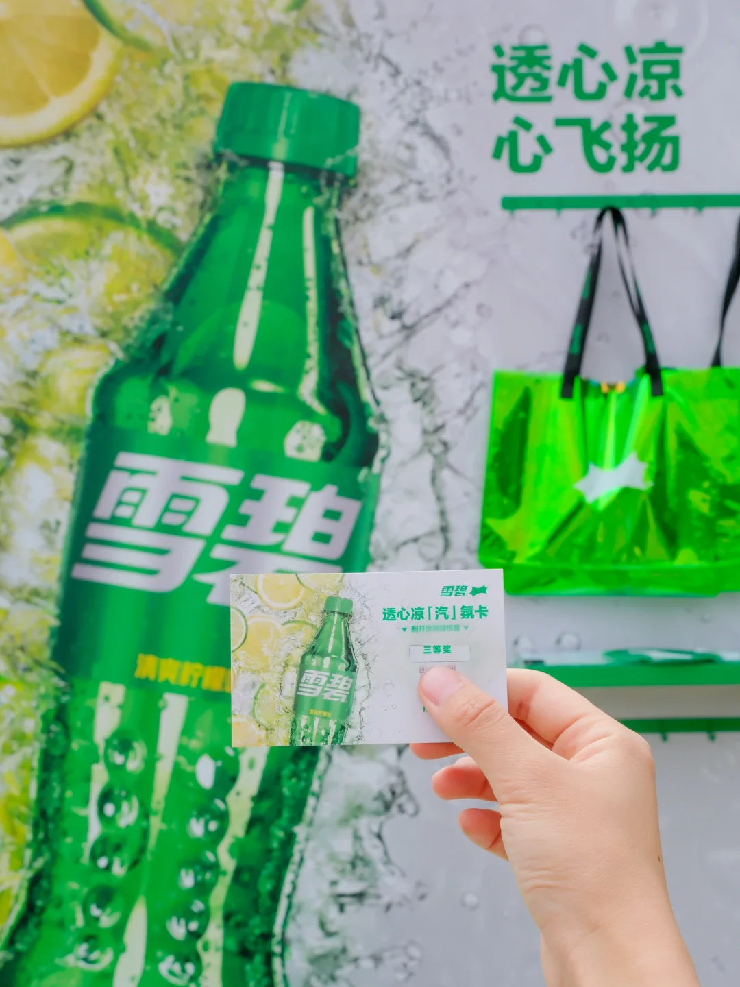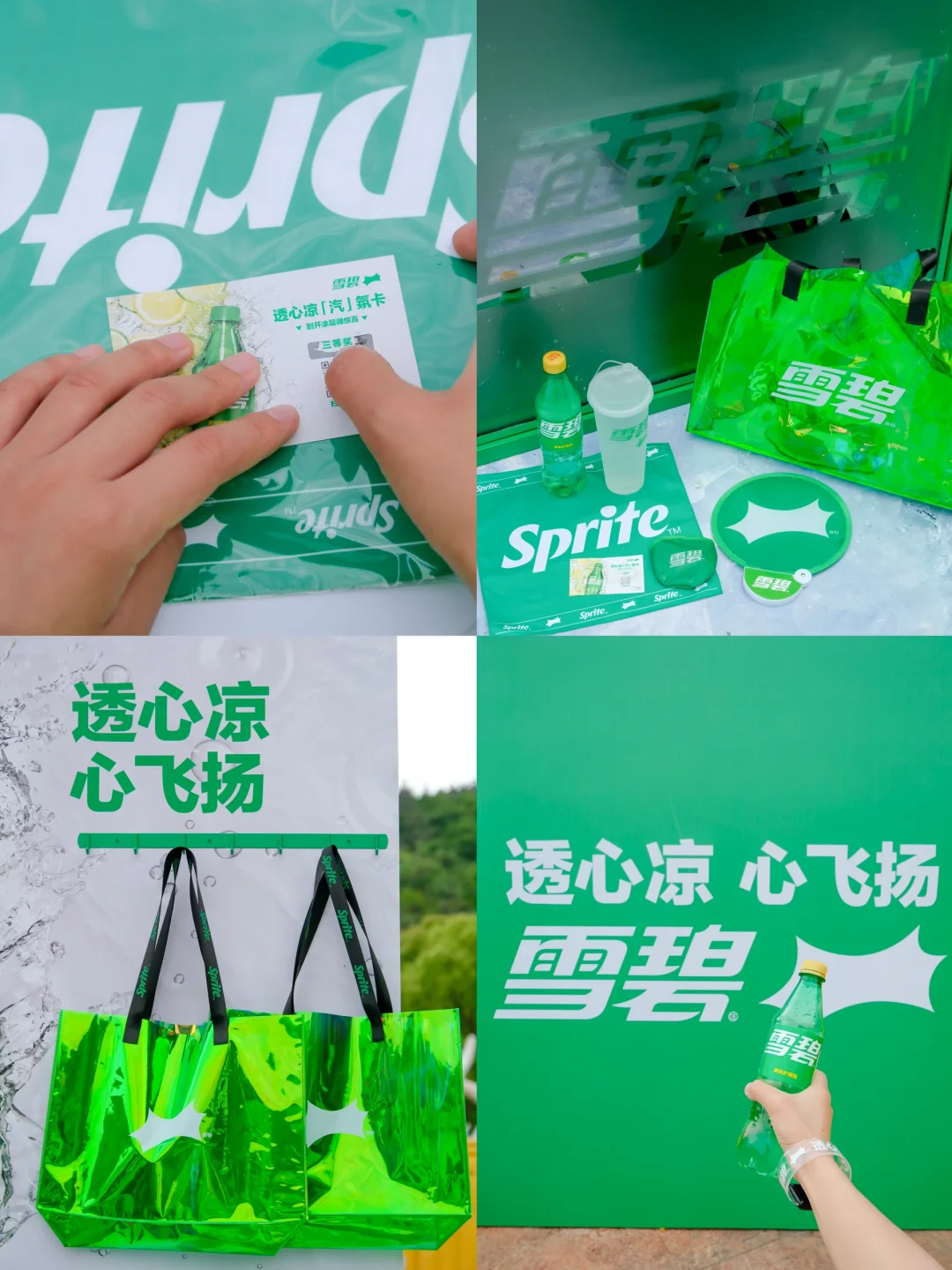 ✅透心凉畅饮吧&透心凉随身听:现场购买1杯雪碧,就可以获得一张「汽」氛刮刮卡,有机会刮到惊喜礼品和限定周边哈,我就赢了一个雪碧方巾,开心!