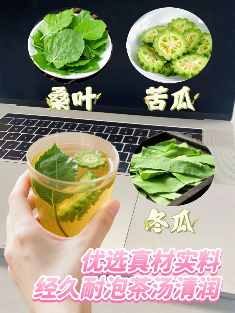 听劝,每天来一杯!《桑叶双瓜茶:自然的健康馈赠》喝过的都夸好!它乃大自然的养生妙品,它以桑叶、冬瓜干、苦瓜干精心配比而成!热水入壶,茶香四溢!轻嗅,芬芳交织;浅尝,桑叶淡雅、冬瓜清甜、苦瓜清苦交融,滋味独特! 这不仅是茶,更是健康享受!于品味问,领略养生之趣,感受自然馈赠,让身心在茶香中舒缓!宝子们,快给家人朋友们安排上吧!