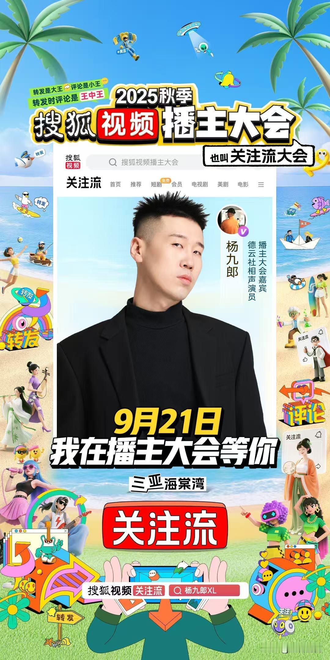 9月21日,海南三亚,2025年秋季搜狐视频播主大会即将盛大启幕! 看了一下今年的搜狐视频播主大会阵容,可谓群星璀璨,有好多眼熟的知名艺人都去现场助力,这阵容太赞了![V5][赞][赞][赞] 厨男我作为一名搜狐视频认证的美食播主,我要去现场给大家作个直播,并拍一些vlog分享给大家。敬请关注[玫瑰][偷笑]