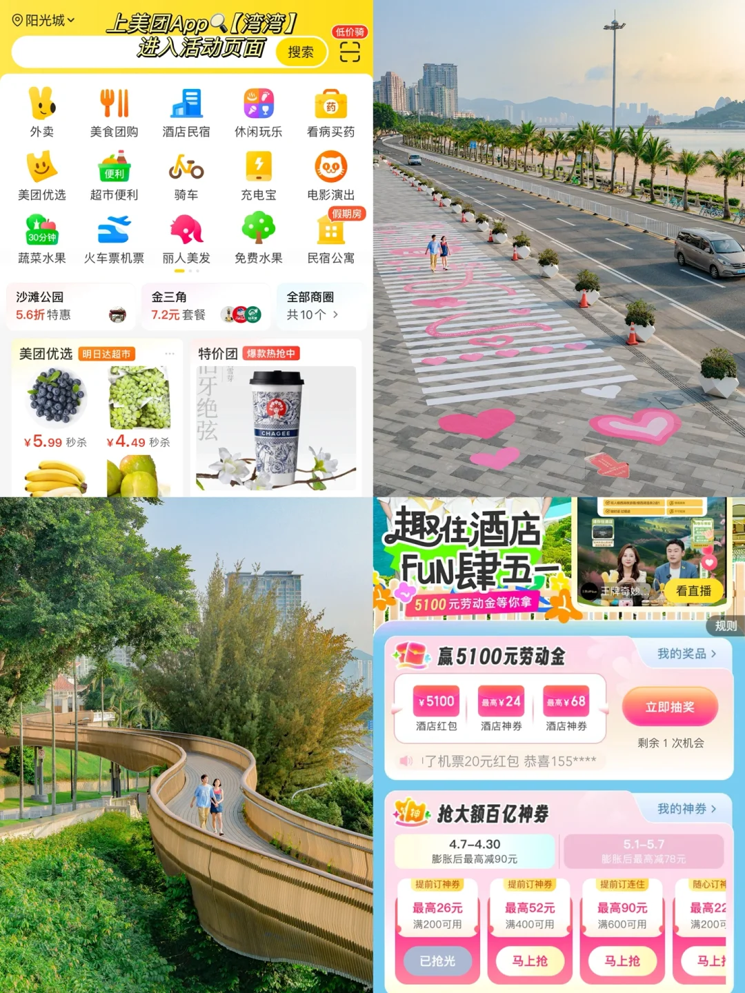🔸 住宿:酒店建议订在香洲区,离各个景点都很近。这次酒店我们是在美团上订的,省心又便宜!最近五一出游季还有福利活动,现在上美团搜索【湾湾】进入活动页面,可以抢大额百亿神券,点击「去膨胀」获得更多满减金额;还有早鸟精选好价,越早订酒店越便宜,这优惠力度真的太香了!