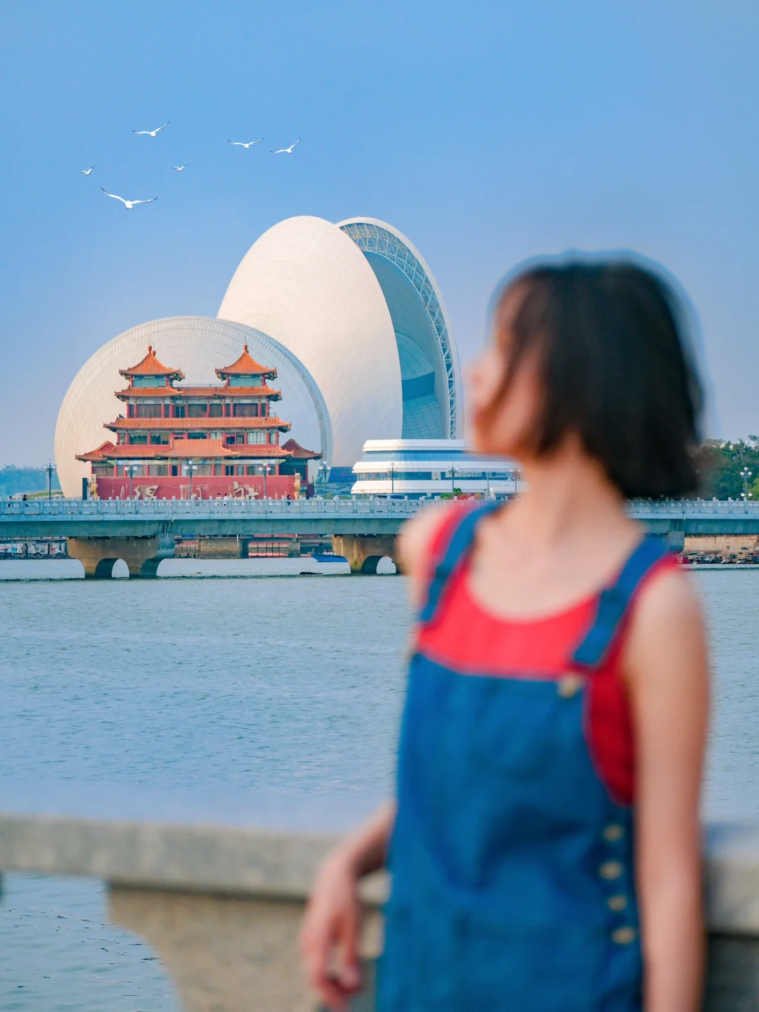 中国唯一在海岛上的歌剧院,如果想拍经典的古今同框机位,直接导航香炉湾公交站