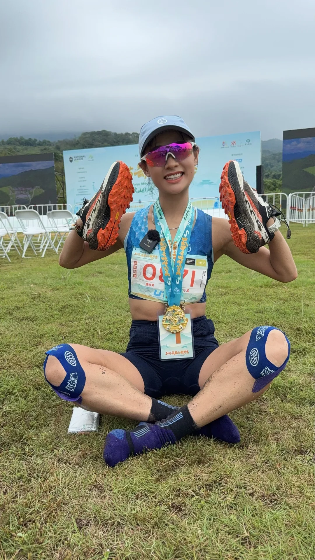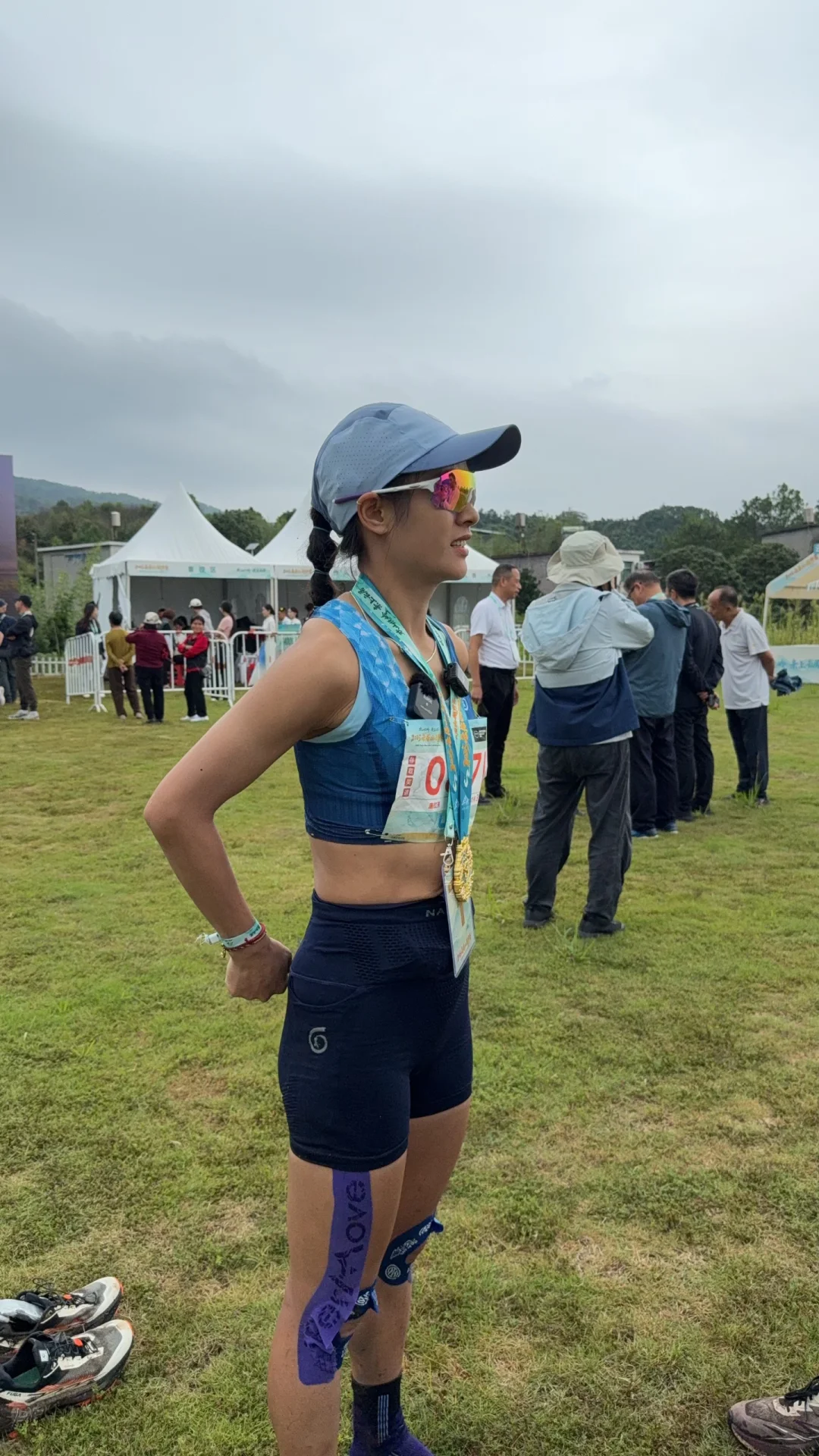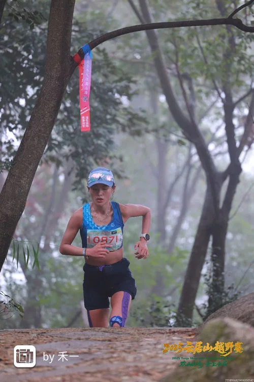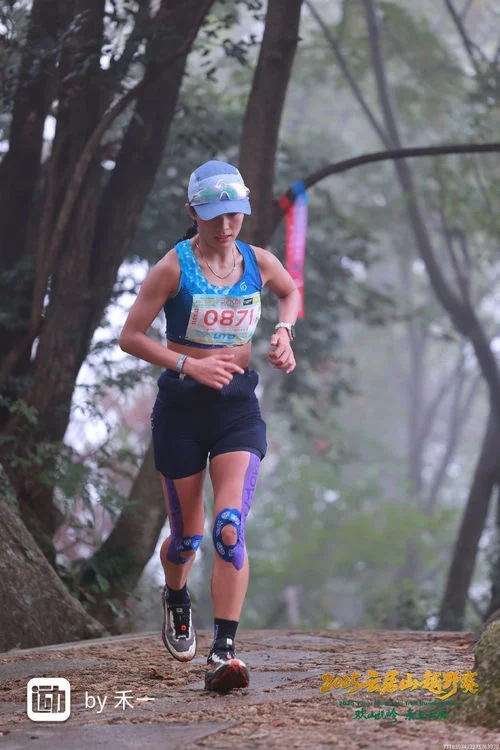 上坡是我的强项,每看到一个上坡,就有一点点小小的兴奋,兴奋过头,有个台阶上坡,脑筋没有急转弯,“砰”撞树上,我站在原地脑袋瓜子嗡嗡了一会儿,摸了下,没流血,又继续“赶路”了。从整体第12名追到第9名,一路都保持在女子第一名,尽管有人告诉我,我已经遥遥领先了,但我的内心不肯松懈一点,就想来拿一个高的表现分。但到20km后跑上坡路段右大腿后侧有点抽筋(因肠胃不适应吃胶,全程没有吃能量胶和盐丸),只能调整节奏。到30km以后,腿有点打软,总感觉下坡要崴到脚,又继续调整,因为这个夏训训练量和强度没有这么大,这次的强度真是够够的了。