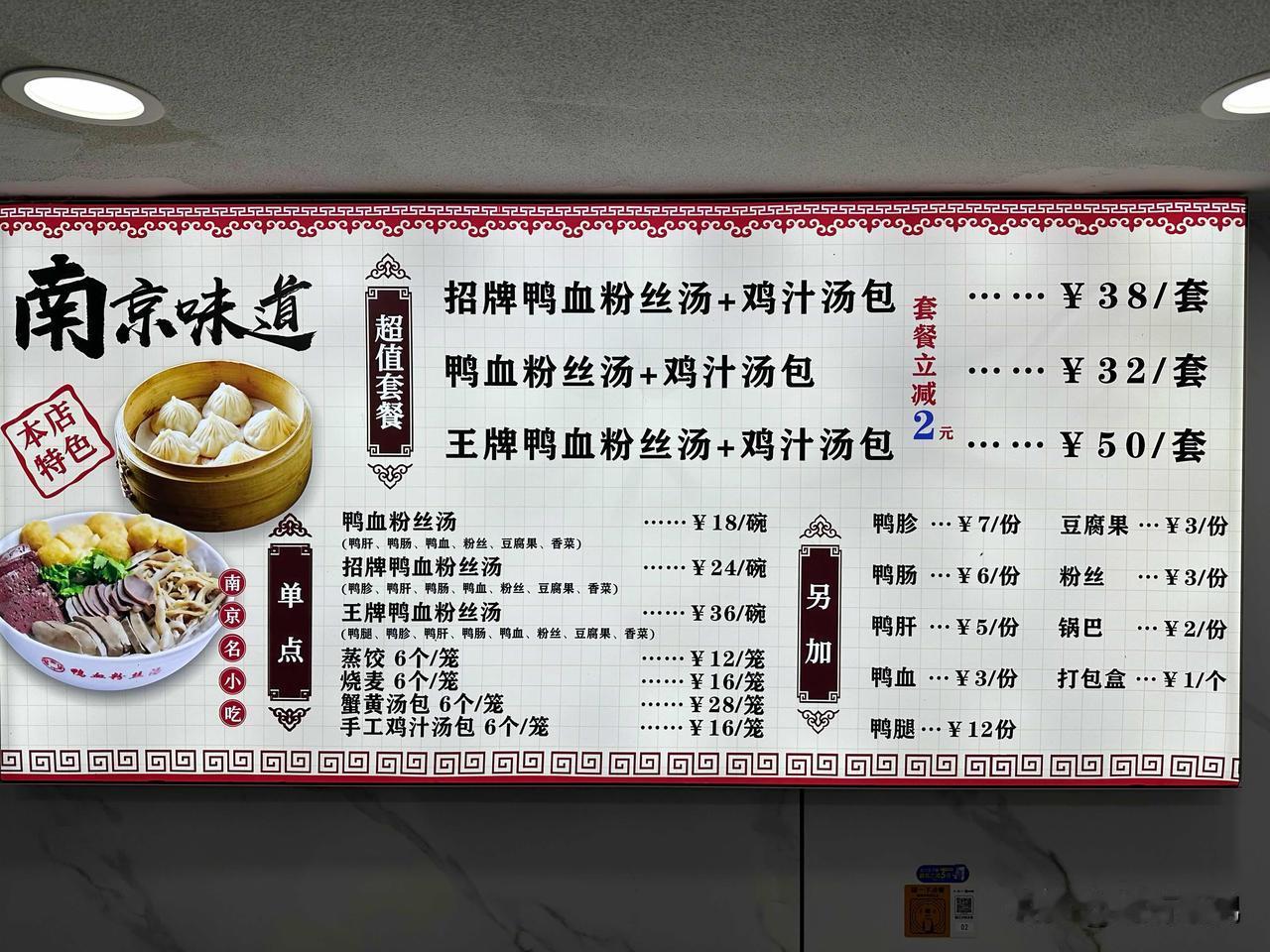 南京我又来了![呲牙] 从海南三亚乘了3个多小时的飞机,避开桦加沙台风🌀,顺利飞抵江苏省会南京,飞机降落时因为南京下暴雨,飞机还在空中盘旋了一段时间。我在新街口附近入住了一家酒店,接下来几天将在南京转一转。 新街口这边算是南京的市中心了,在酒店不远处有一条美食街,看到各种鸭血粉丝汤店,还有各种南京及安徽小吃。我选的这家鸭血粉丝店味道做的还可以,就是比我几年之前来南京要贵了不少。 招牌的鸭血粉丝比普通的多加了鸭胗,加一笼鸡汁汤包38元,我又去隔壁锅贴🥟店买了一份锅贴花了15元。吃完才发现这家店像是新开的,这条街看着有好多写着开业几十年的老店,是不是更值得去尝一尝?[憨笑] 南京的朋友们,南京当地有什么好吃好玩的推荐吗?🤝