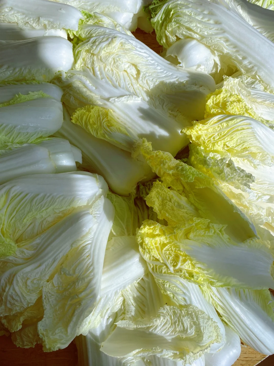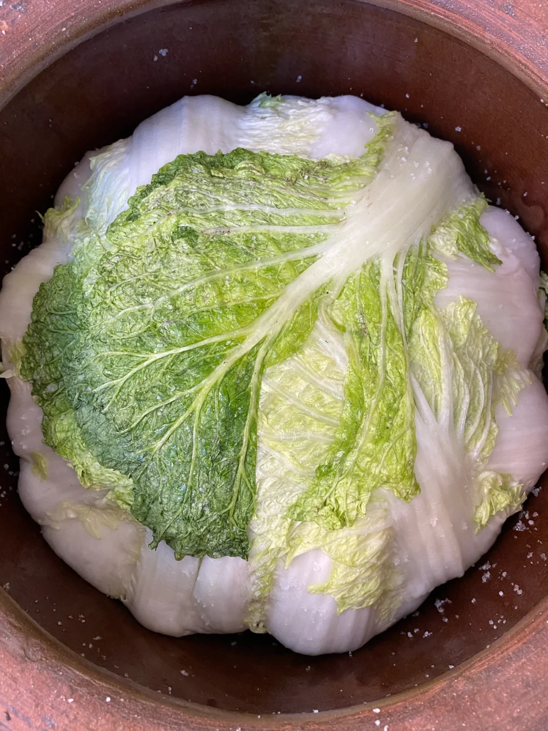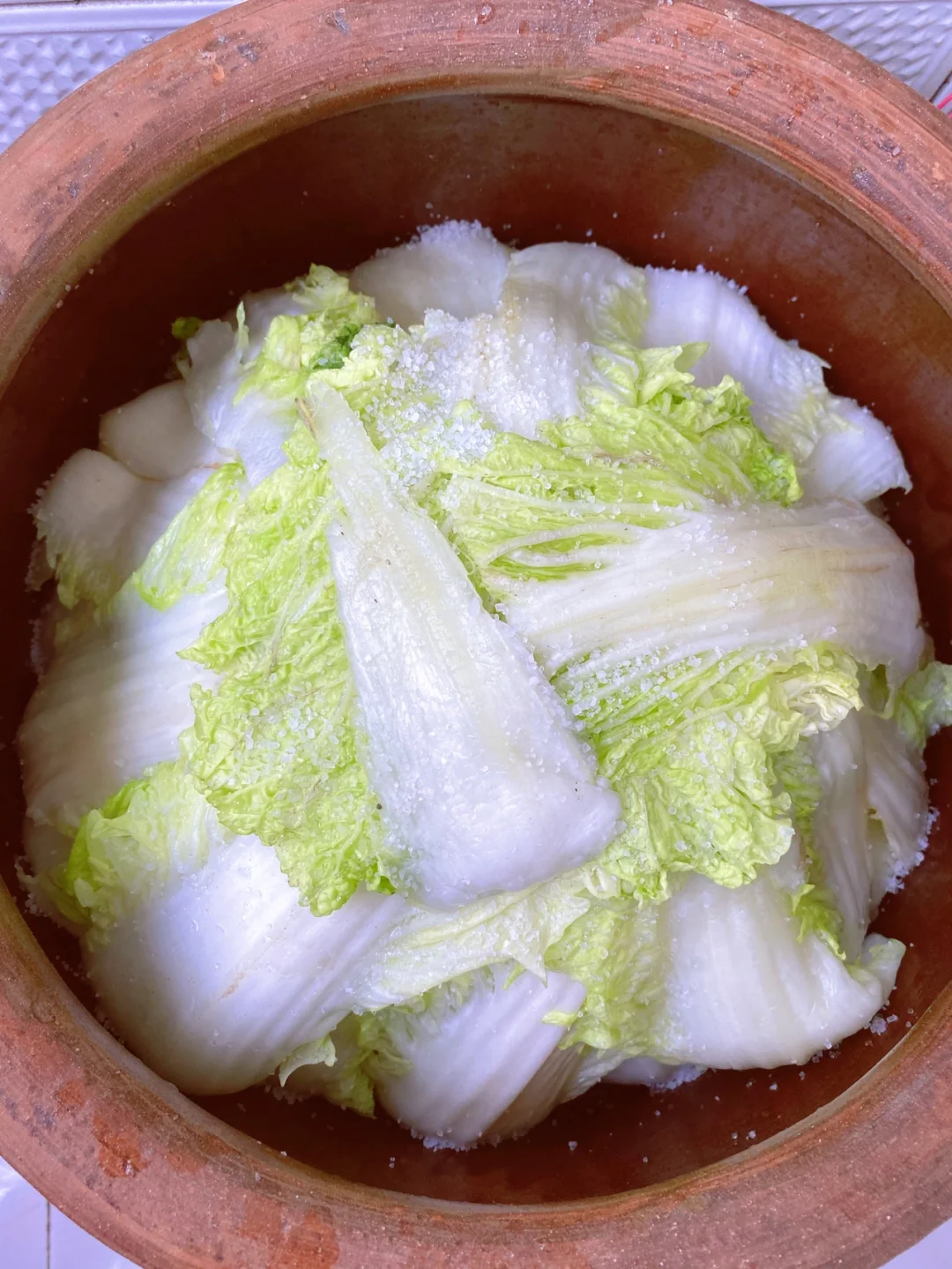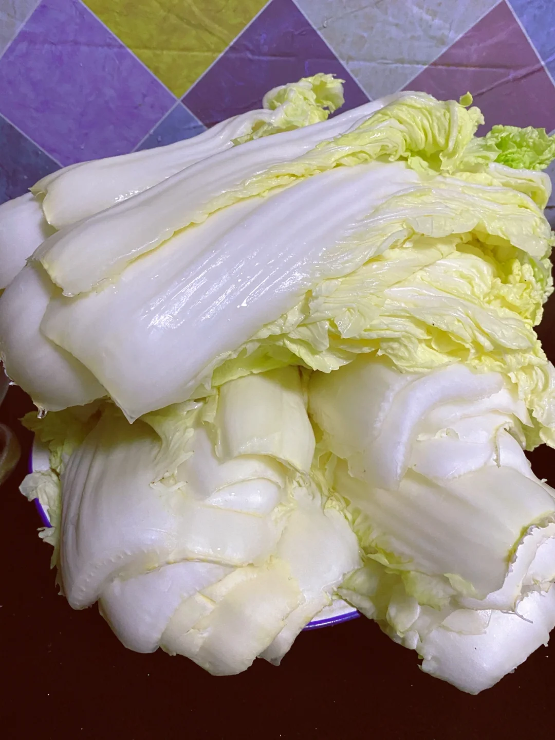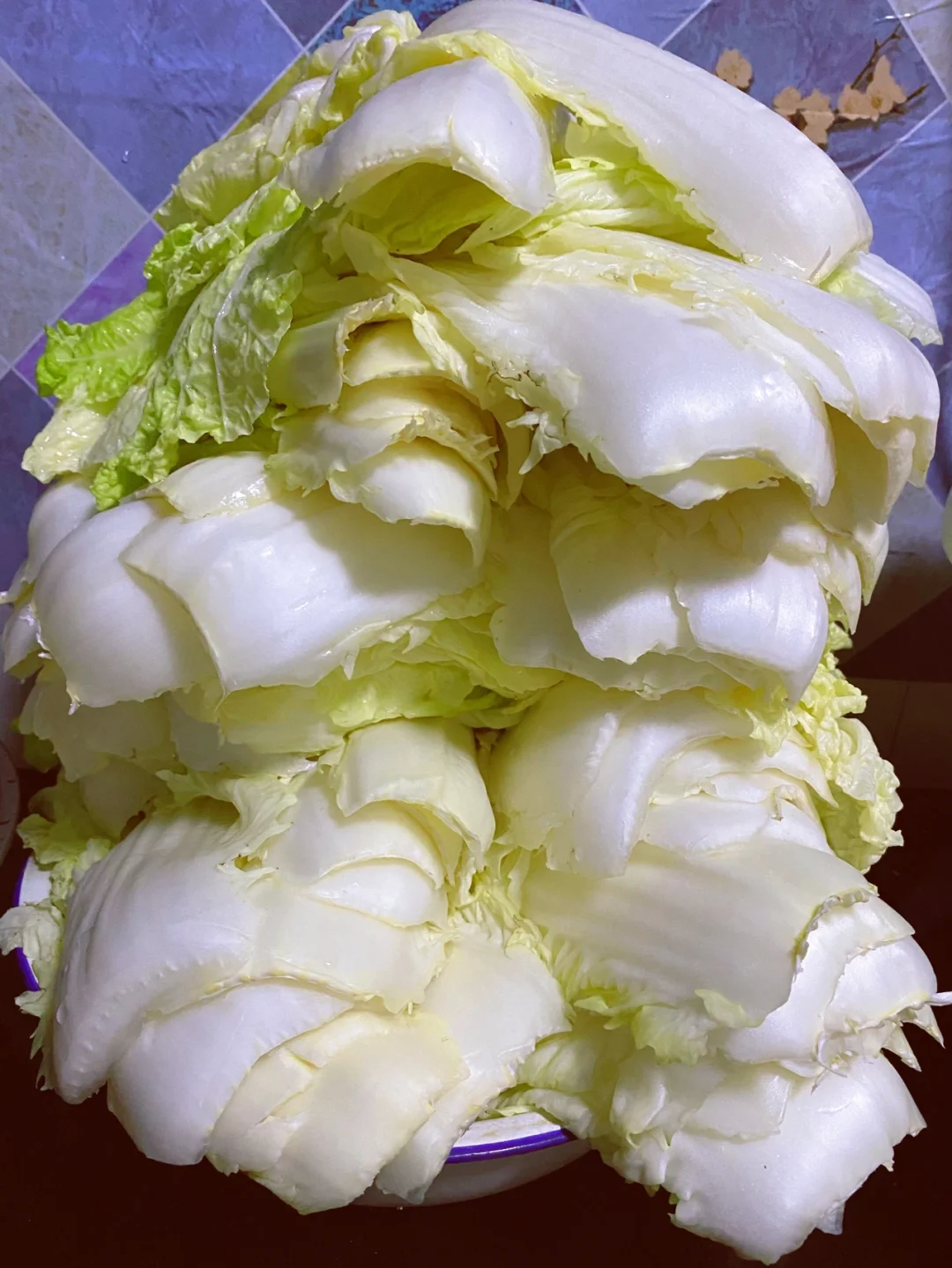 又到了腌泡菜的季节 在我们东北,秋天都会腌制酸菜,一腌就是一大缸,留着冬天吃。 东北酸菜制作方法: 1.把白菜掰成一片一片的,腌的时候省地方!如果你家的容器大可以腌整颗的🥬。 2.白菜晒焉水分,这样做的酸菜口感会更脆爽,而且更好的往缸里面码放。 3.晒蔫的白菜洗干净,依次码放缸中,每层白菜上都撒少许盐,一层一层地码完。 4.菜缸里白菜上压石头或重物。 5.加凉白开水淹过白菜即🉑️。放置阴凉通风处,腌透即可食用。
