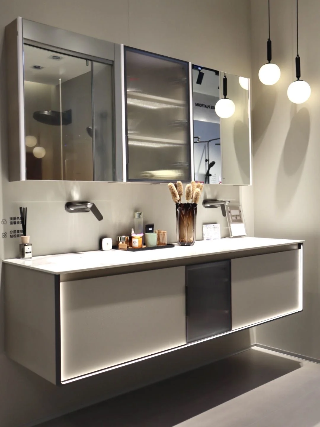 💡 智能镜柜也很惊喜!挥手感应开关,灯光柔和不刺眼,收纳空间超大,hu肤品、洗漱用品统统藏进去,台面干净到不行~