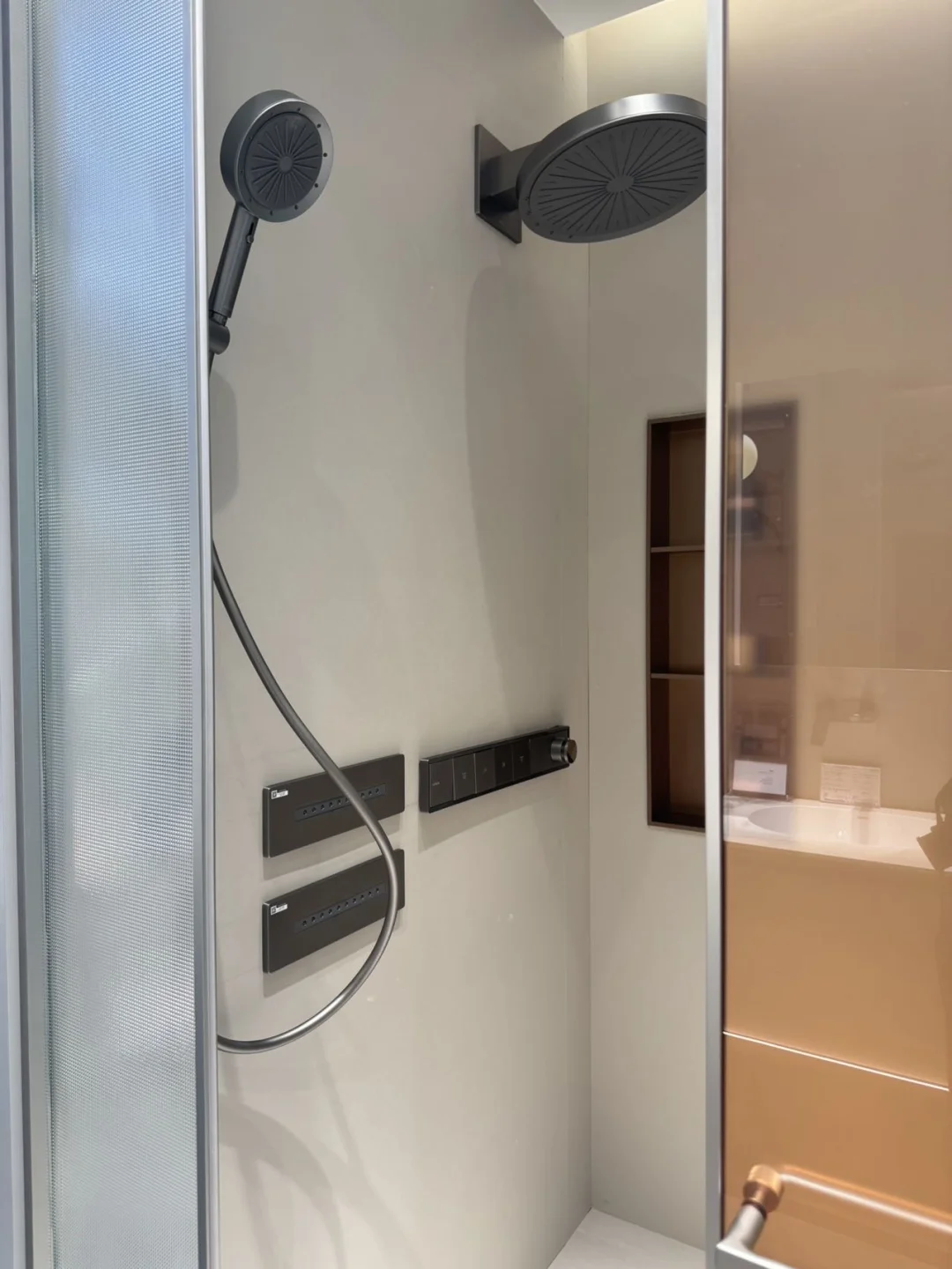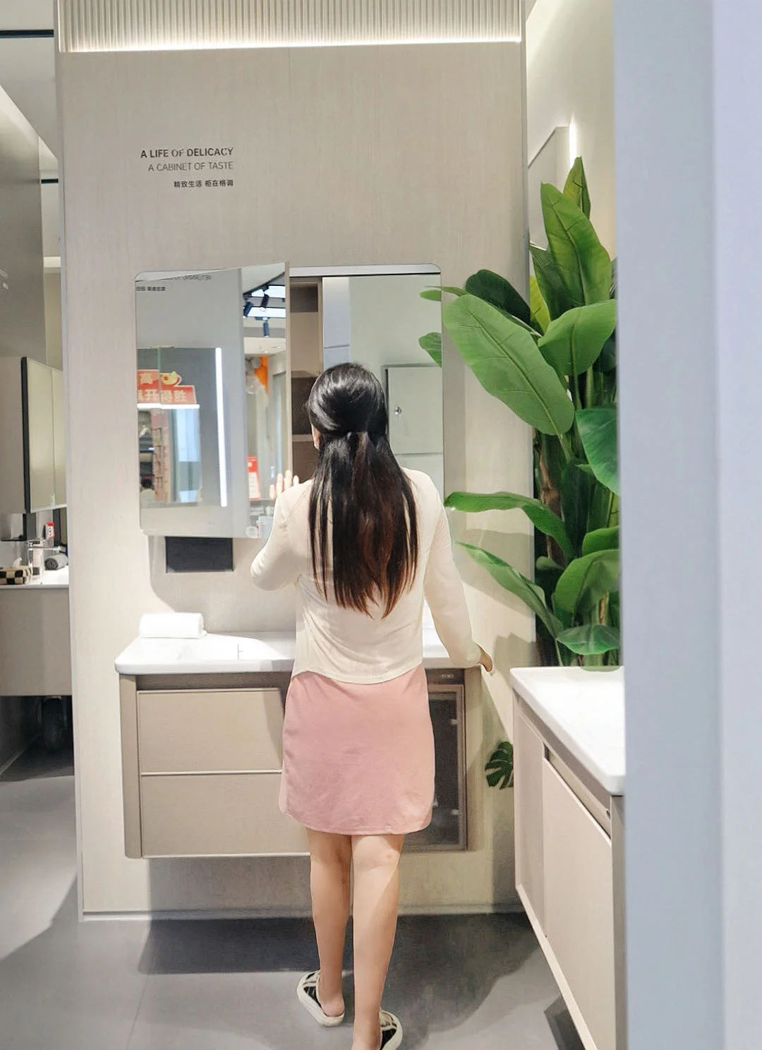 💡 智能镜柜也很惊喜!挥手感应开关,灯光柔和不刺眼,收纳空间超大,hu肤品、洗漱用品统统藏进去,台面干净到不行~