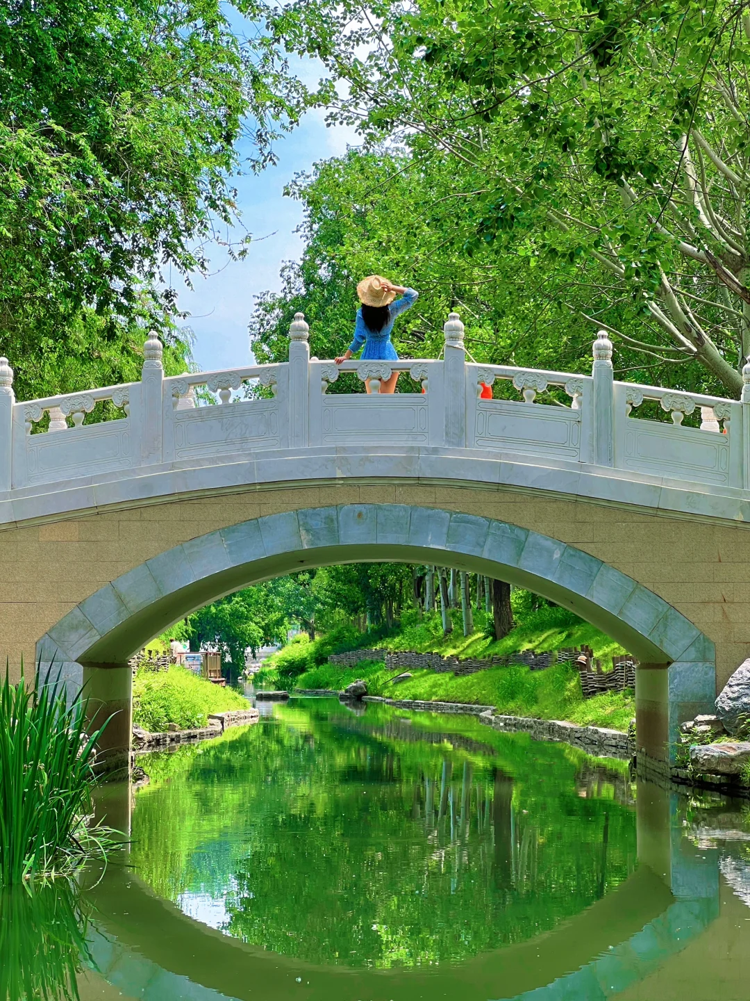 🉑️站在木桥上,人站在对面的拱桥上俯拍,注意安全!