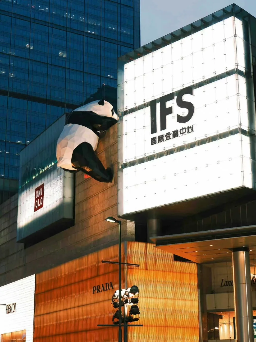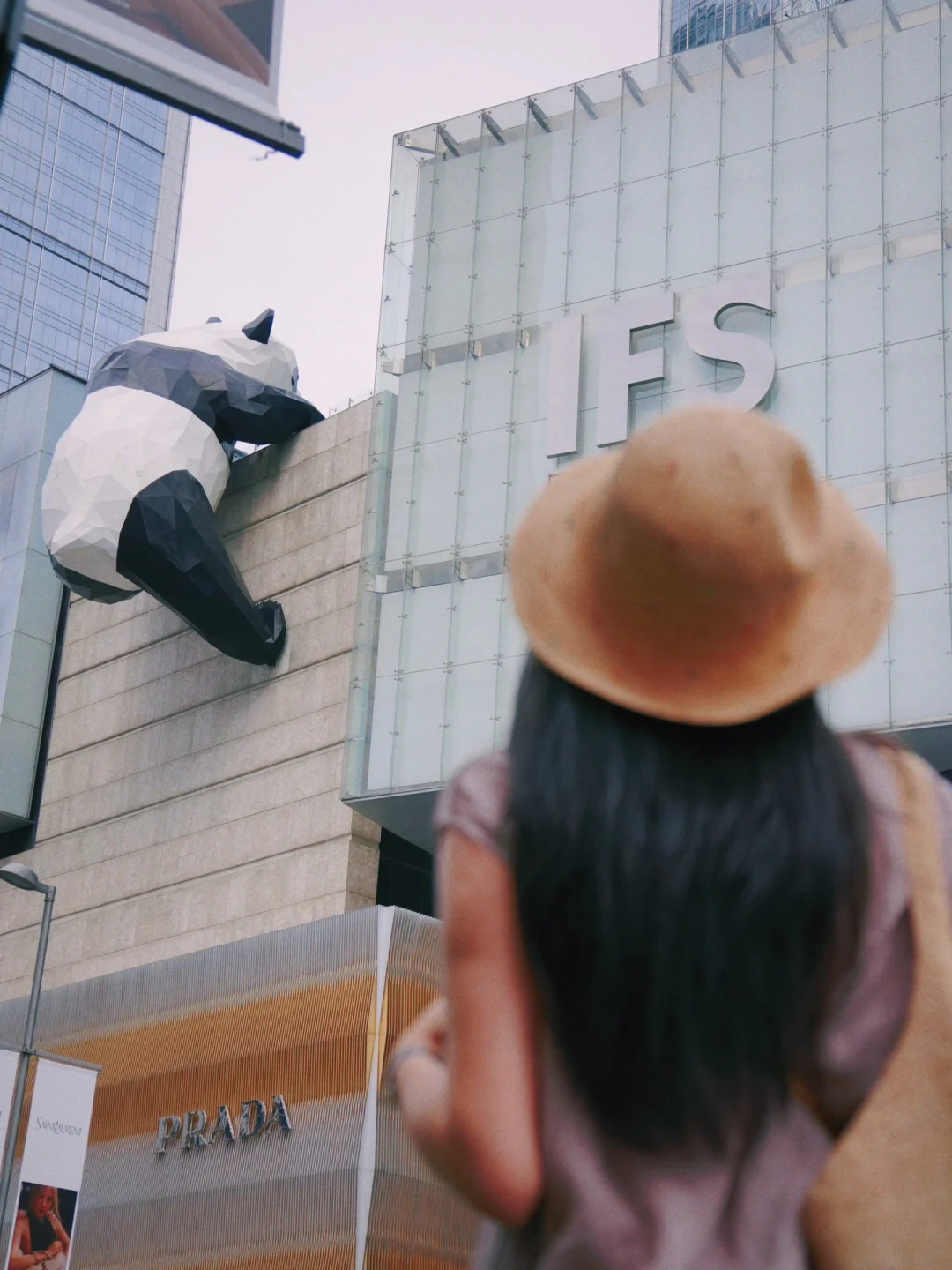 在IFS马路斜对面栏杆处,可以拍到摸熊猫屁屁
