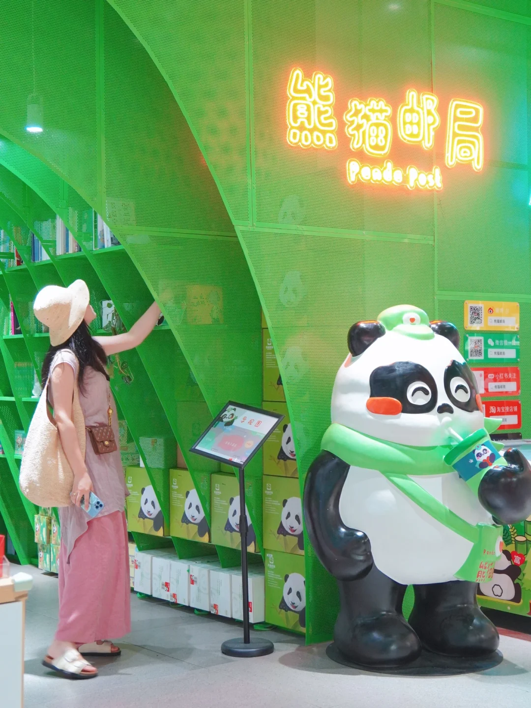 这里你会遇到熊猫邮局,门口就🈶敲可爱的熊猫装置and涂鸦墙,店里可以逛逛,能盖章、寄明信片和文创雪糕🍦