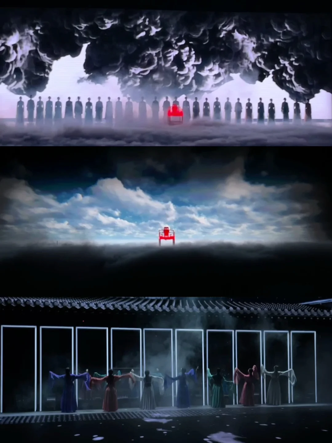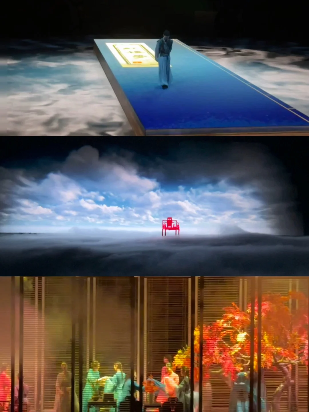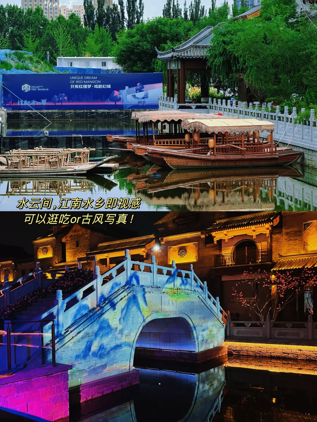 全部都是沉浸式演出,每部剧的舞美都精彩,室外外景也漂亮,晚上还有光影、水雾森加持,实现了随手拍大片!