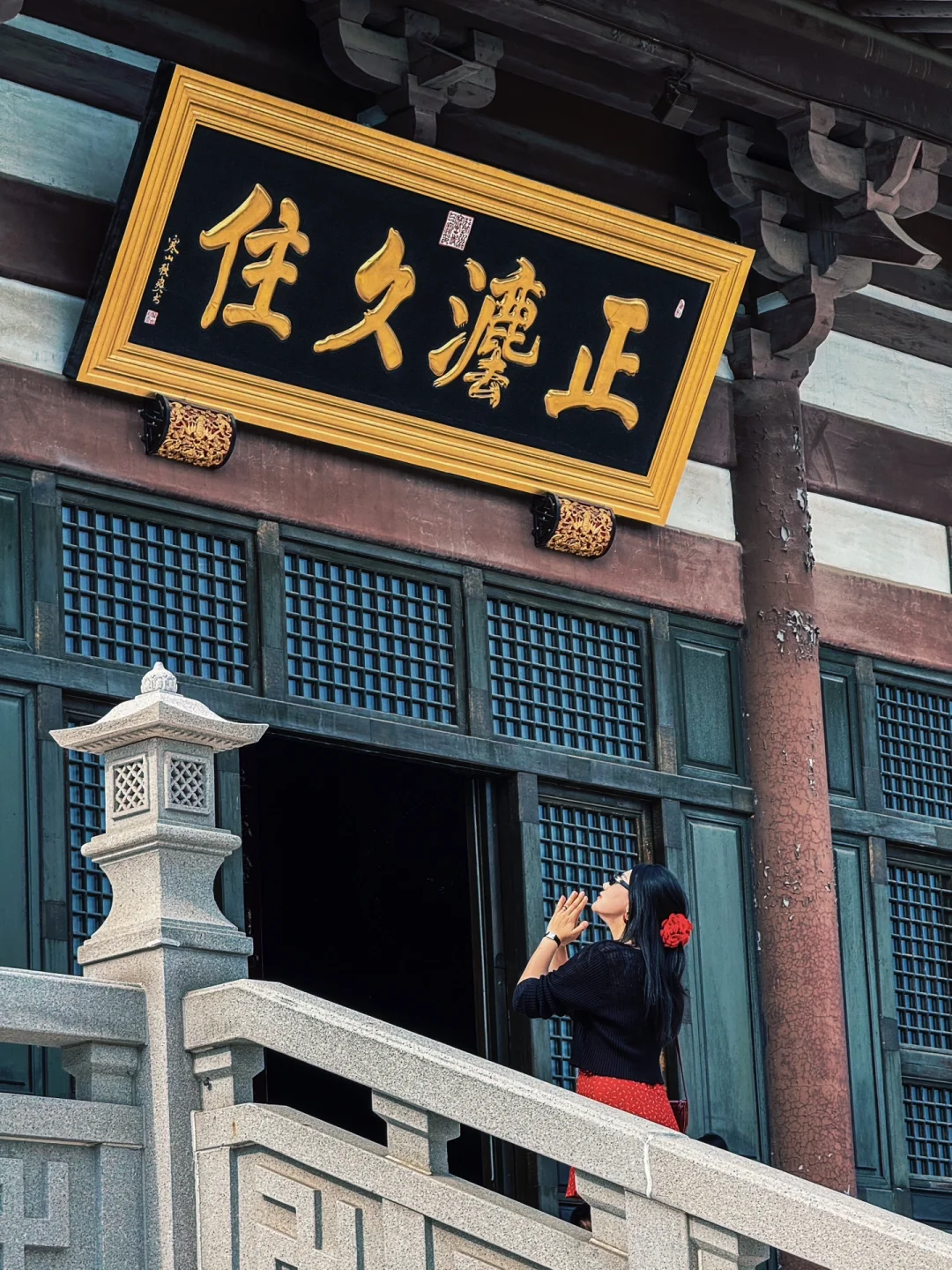 寺院面积不大不小,和古建、园林绿植同框都好看!院内有还很乖的小猫、狗狗🐶~
