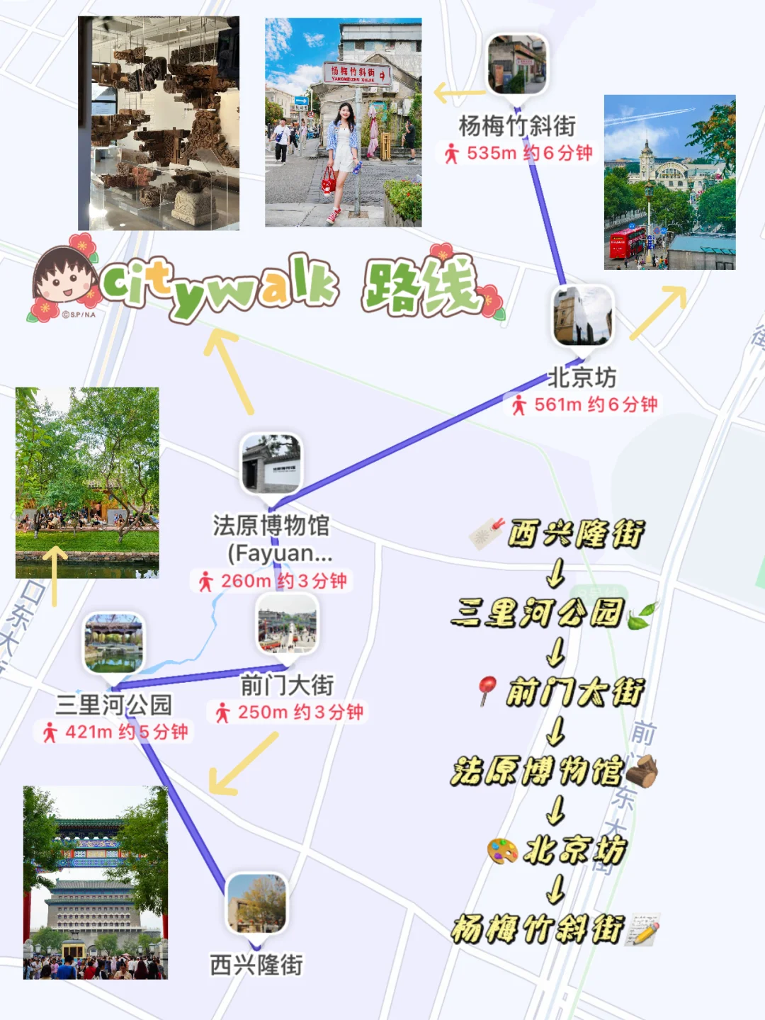 start ➠西兴隆街➠三里河公园🍃➠前门大街➠北京坊🎨➠大栅栏➠ 杨梅竹斜街🔚