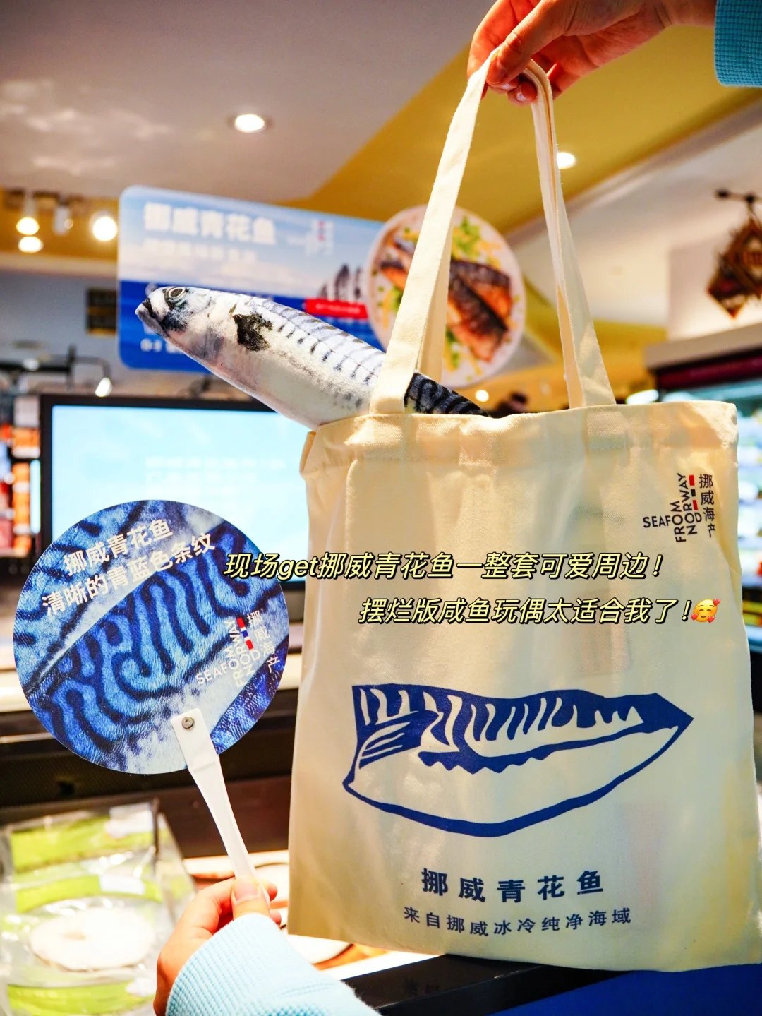 现场买挪威青花鱼还能免费🆓领呆萌的青花鱼周边~