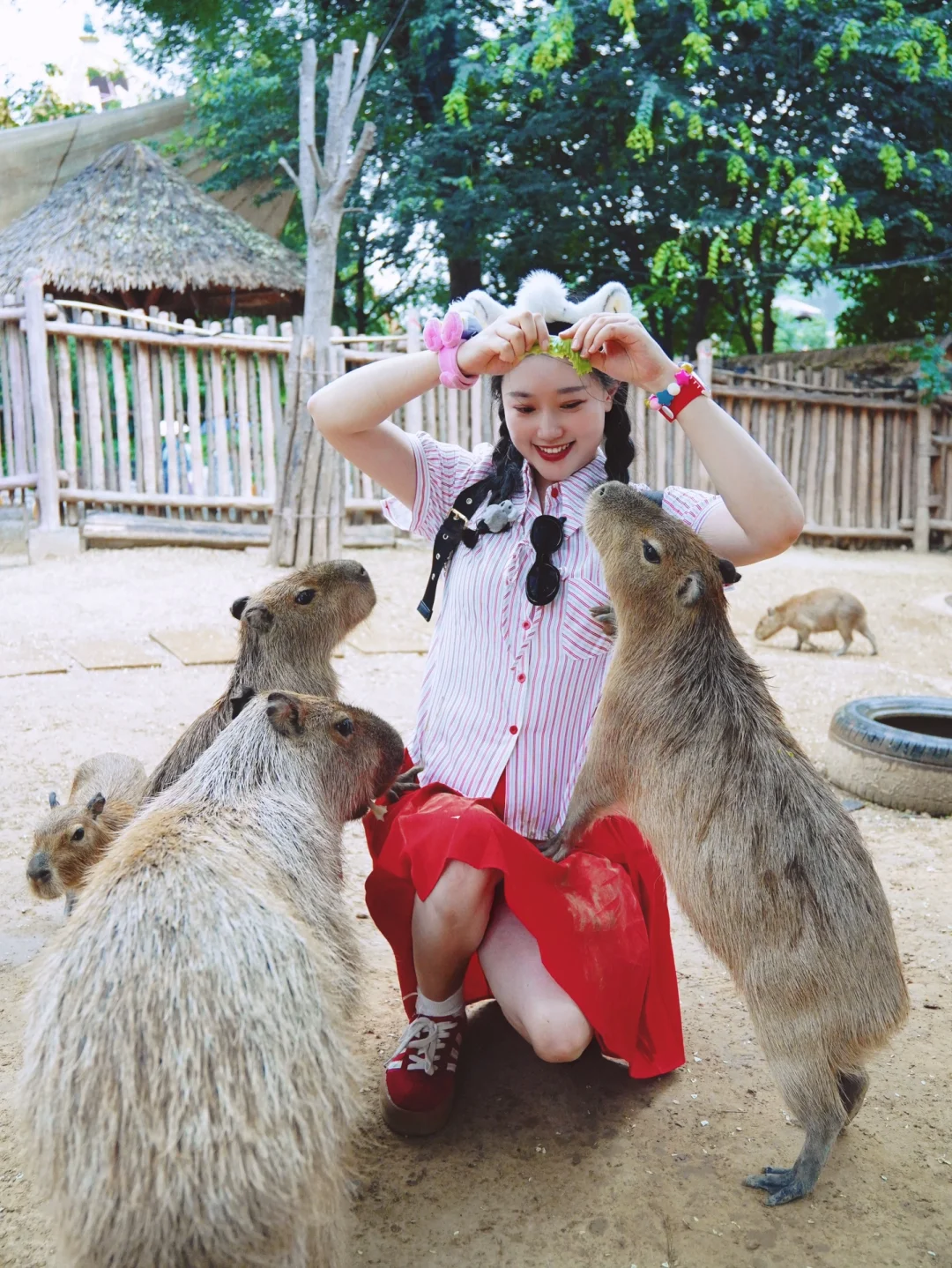这里的卡皮巴拉每个都是小吃货!拿着菜菜🥬会跟你满场跑!太太太萌啦~