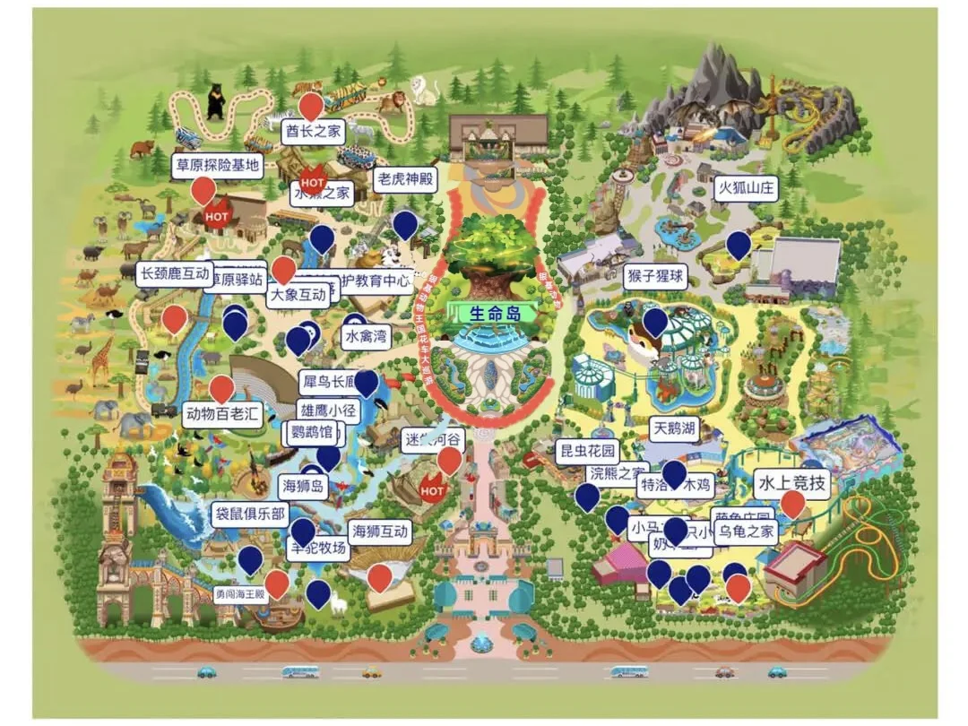 入园-代步车-酋长之家-草原探险-泰哥餐厅-翡翠海(卡皮巴拉、袋鼠🦘、海狮🦭)-梦幻淡水鱼-迷失河谷-萌宠乐园(羊驼、小猪🐖、矮马)-奇幻盒子(室内小型游乐)-玩室外设备(龙谷探秘过山车、勇闯海王殿、飞龙塔跳楼机)-狂欢泼水节-大巡游-烟花秀🔚