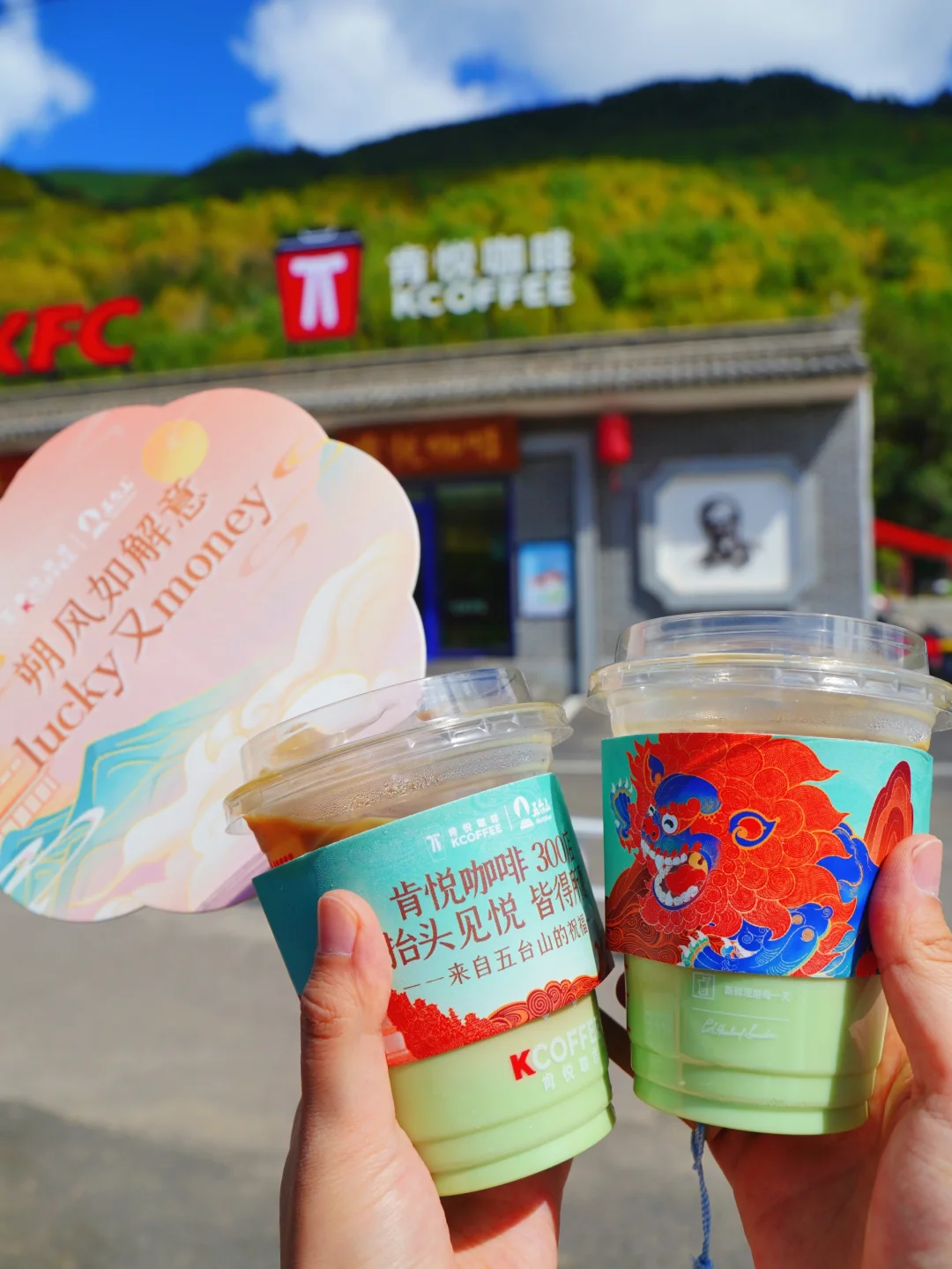 这次来五台山遇上「肯悦咖啡☕」No.300家门店!✌在五台山解锁冰吸绿豆味生椰拿铁!