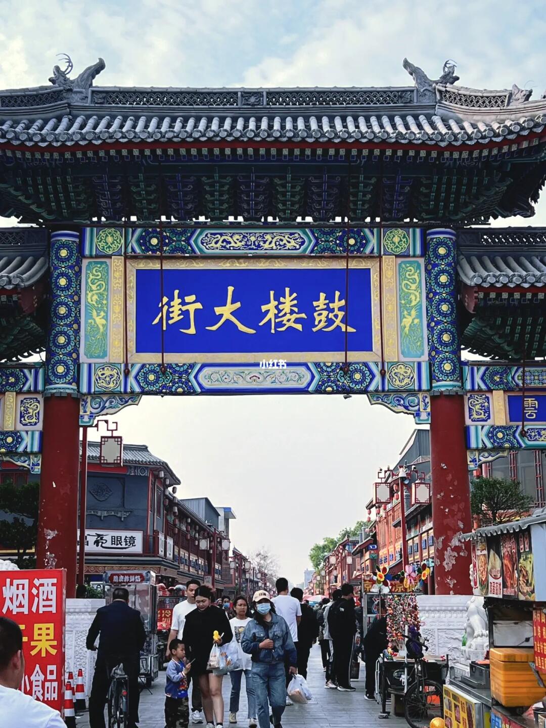 门口是鼓楼大街的牌楼,很像北京的南锣鼓巷,各种小吃、餐馆,还有卖服装、猫猫狗狗的…比较商业化。