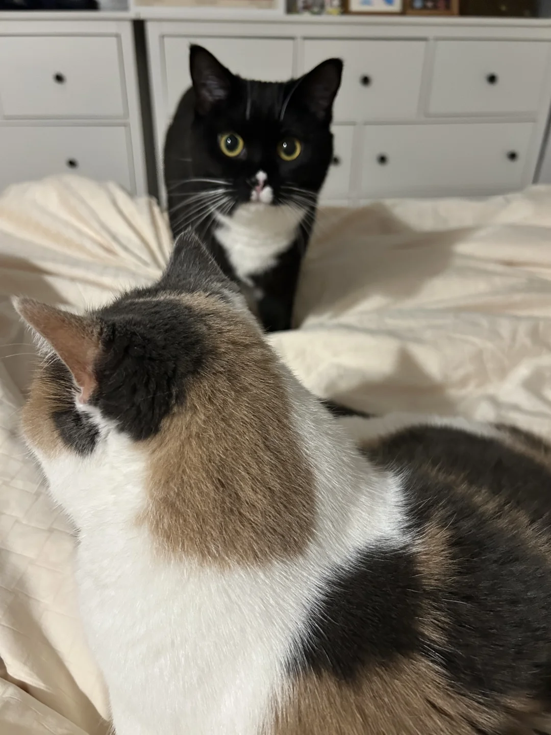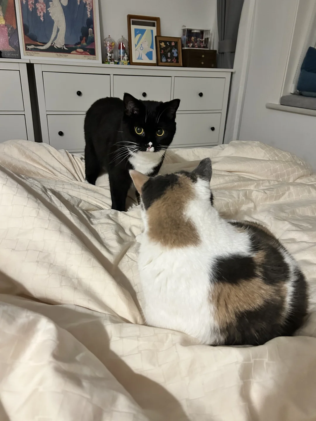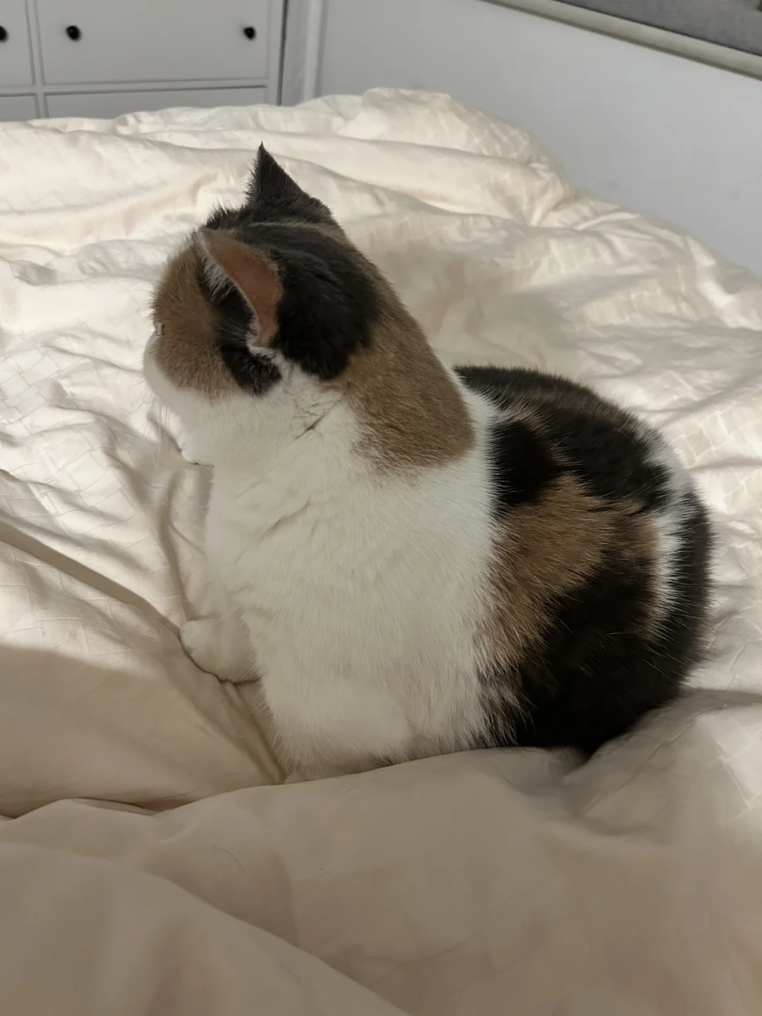 猫 奶牛猫 三花猫 冬天的床上会长猫 天冷了长猫了