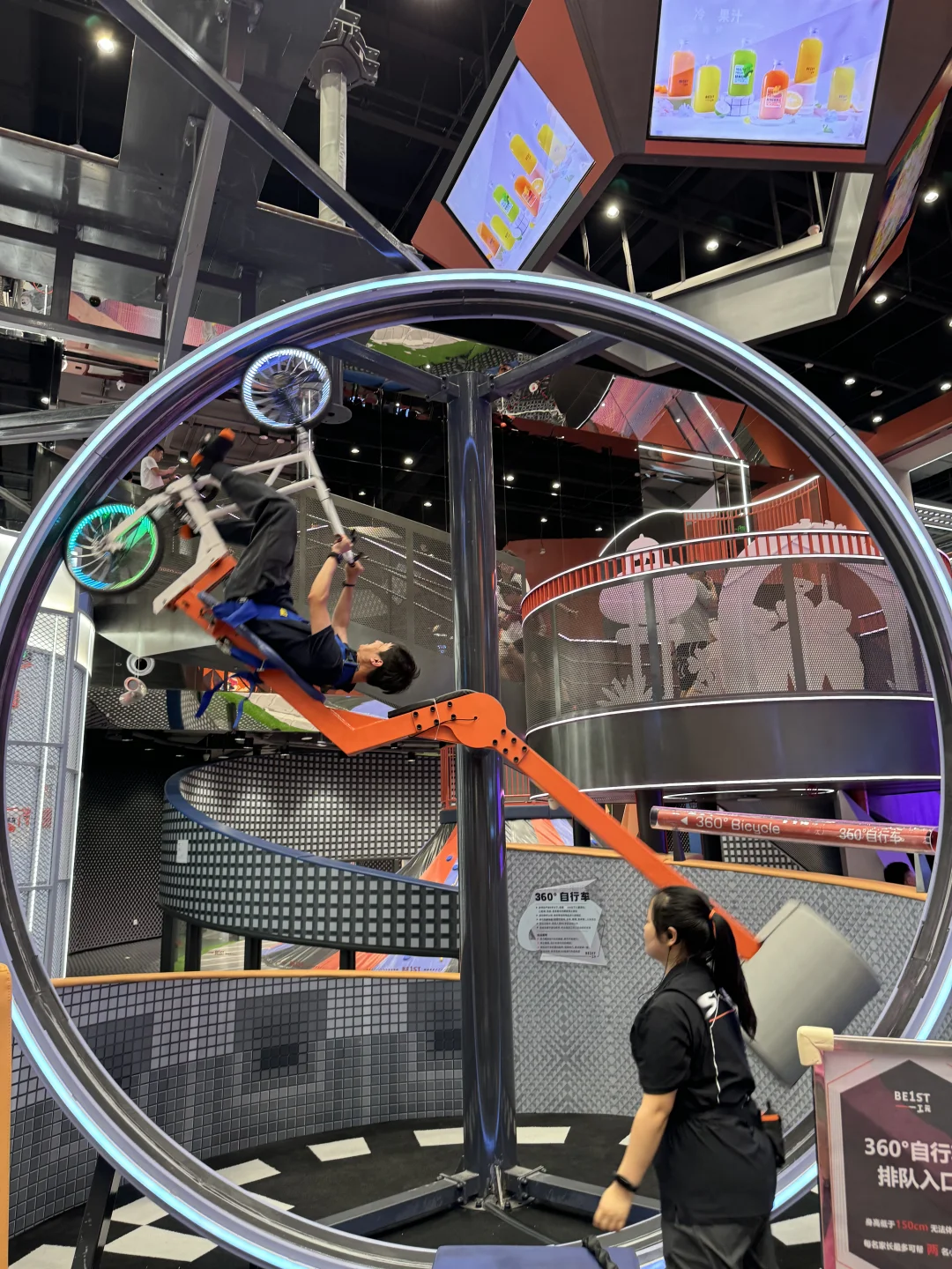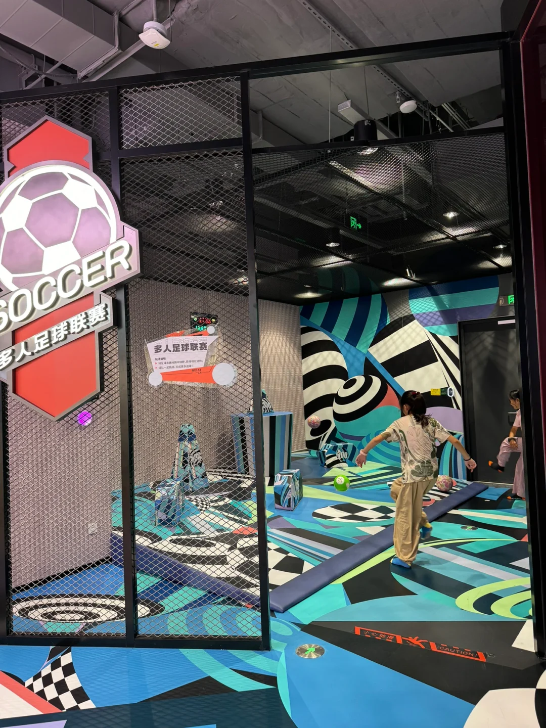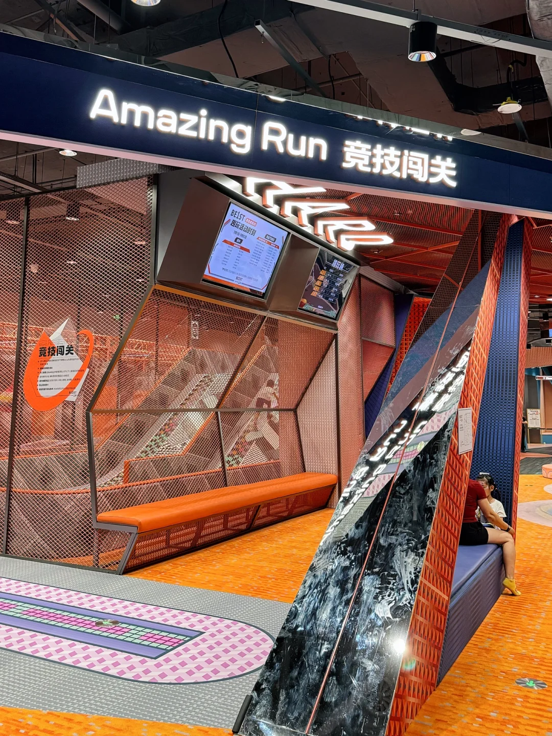 两层楼高度,有高空木桩、高空独木桥、急速滑轨…相当于把丛林冒险搬到了室内,原本就恐高的我瑟瑟发抖…🥹