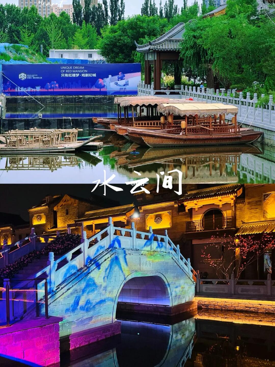 江南水乡建筑风格,小桥流水人家的既视感,适合古风拍照,旁边是《只有红楼梦·戏剧幻城》的剧场,市集上很多古风、红楼相关的文创~