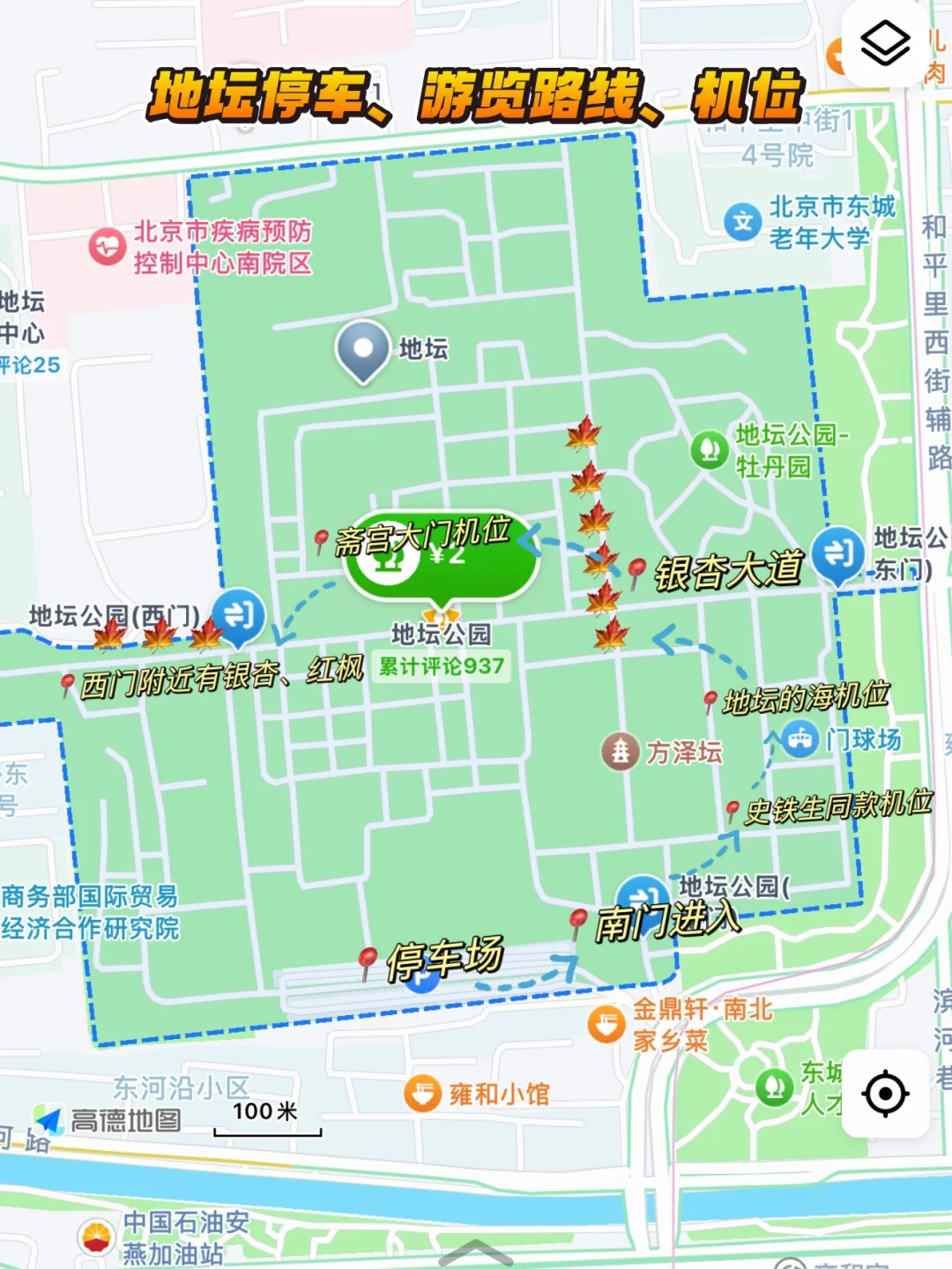 南门进入➠铁生同款机位📚➠ 地坛的海🌊 ➠方泽坛➠ 银杏大道🍁➠ 钟楼 ➠ 斋宫 ➠ 西门红枫🔚
