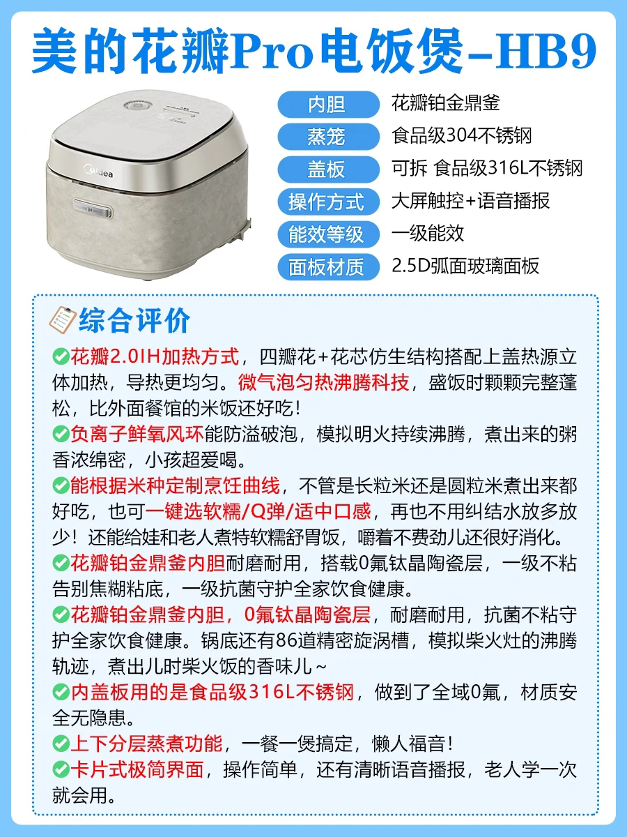 [赞R]双十一如果你也在考虑换一个能满足全家口味,顿顿享受香甜好米饭的电饭煲,不妨看看这款美的花瓣Pro电饭煲HB9