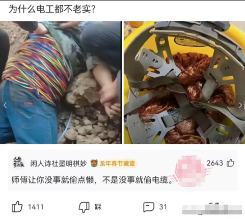 师傅让你没事就偷点懒,不是没事就偷电缆。