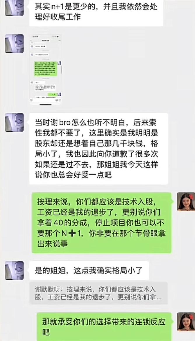 用别人的钱创自己的业,失败了还开小号怪别人。事情起因是黑犬酱早年靠模仿某韩剧角色走红网络后,为帮弟媳小马创业专门成立MCN公司。不久后小马把她认识十年的发小介绍给黑犬酱,希望能带她一起创业,当时发小账号只有2000粉,但黑犬酱二话不说给她开8000月薪,并且注资50万做服装品牌,让其零成本占股51%,甚至自己亲弟弟仅拿3000工资,勤勤恳恳的24小时待命,又打包又当客服的,还被那个发小责怪他是在偷懒。 为了给她起号,黑犬酱还专门从长沙飞杭州,手把手教她拍摄、改风格,就连后来合同也是按对方的要求签。 结果最后项目出现亏损要停止,她却要求黑犬酱赔付N+1。更过分的是她和其男友在黑犬酱这个投资50万的项目里分文不出,项目亏损后还向黑犬酱要35万买回自己快倒闭公司的股份。并表示你只是亏50万,我可是浪费了一整年时间。 散伙后还另开小号装路人写小作文,说黑犬酱偏心她弟弟和弟媳不培养她,全然不提自己一分钱没出就拿了51%的股份和每月8000块高薪的事实。最后黑犬酱只能晒聊天记录和转账自证。好心带她创业最后遭到这样的对待,只能说有些人真的不值得帮。