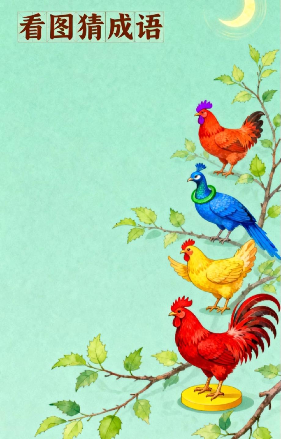 谁是“成语秒答王”?树枝上的鸡和孔雀,答案就在眼前,我赌你3秒就能说出来,试试?