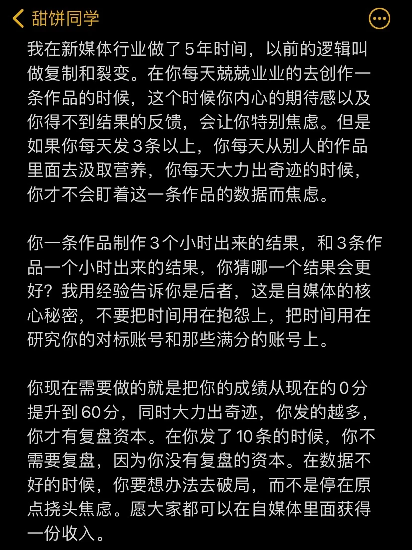 每天一个自媒体运营知识1️⃣8️⃣2️⃣ 这是一个大数据平台,你可以理解为这是一个开卷考试,在这个平台里面已经有很多做的很好的博主了。就按照他的模型去模拟,去重新创作就可以了。为什么非得去创造一个全新的领域或者模板呢?从一开始就想要去创新的人,99%的人都会失败。创新是建立在你有一定的基础上再去创新。