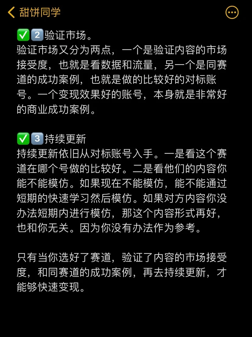 每天一个自媒体运营知识1️⃣8️⃣0️⃣ 真的有很多博主从开始的时候就开始变现了。只有新手才会考虑先涨粉后变现,高手都是边变现边涨粉。变现其实一共就3个步骤,分别是选赛道、验证市场、持续更新。