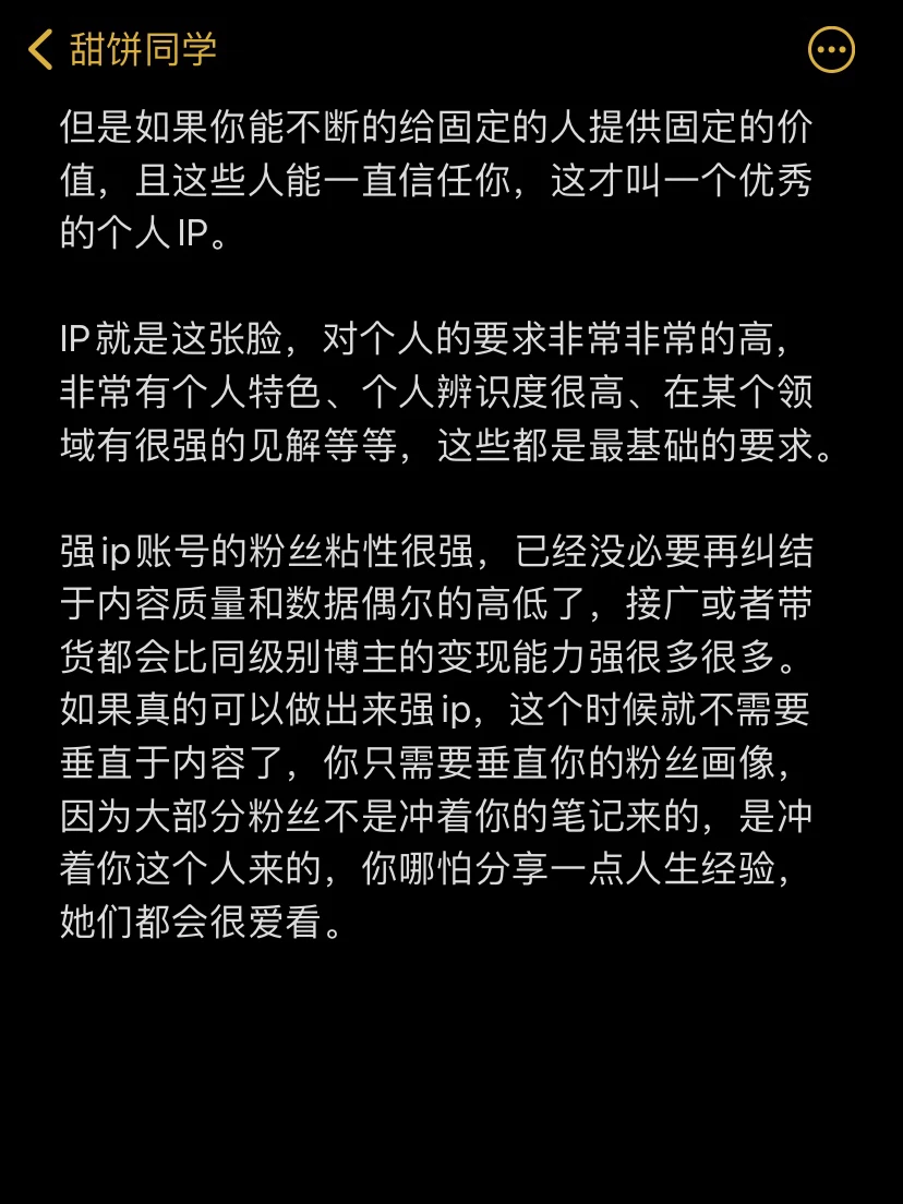 每天一个自媒体运营知识2️⃣5️⃣3️⃣ 我最近发现很多人做个人IP,连人设都是假的,然后搞点所谓的“流量密码”,就是告诉大家她自己要起个IP。这叫个人IP吗?这不叫个人IP,这种所谓的ip是一定不会长久的。