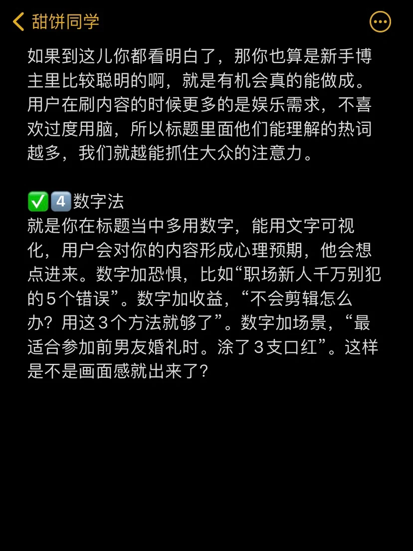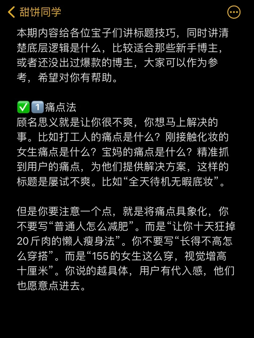 本期内容给各位宝子们讲标题技巧,同时讲清楚底层逻辑是什么,比较适合那些新手博主,或者还没出过爆款的博主,大家可以作为参考,希望对你有帮助。