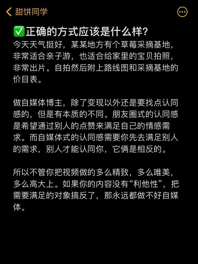每天一个自媒体运营知识1️⃣8️⃣4️⃣ 为什么你发的内容像朋友圈一样,而别人随便发个朋友圈都可以像自媒体一样去制造影响力。根本原因就是你的内容没有“利他性”。你只是想表达自己的情感,根本不考虑用户看的时候是什么感受。