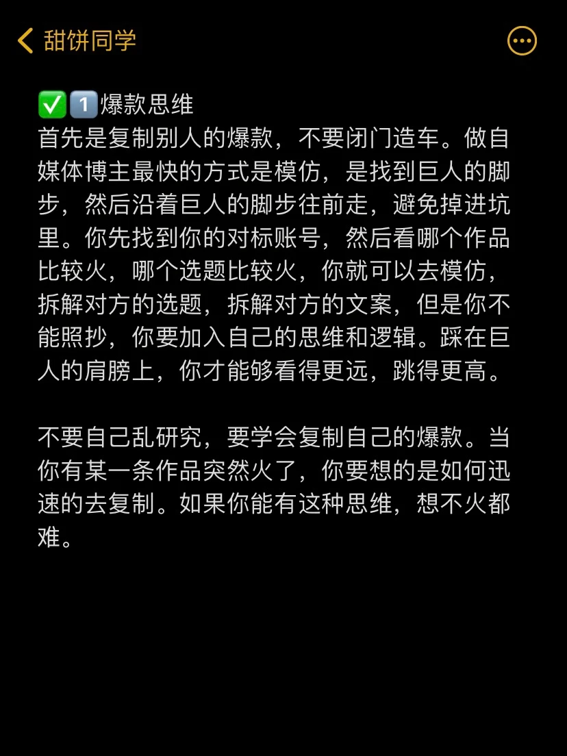 每天一个自媒体运营知识1️⃣7️⃣4️⃣ 如果没有爆款思维和流量思维,做自媒体博主真的很难。今天我给大家分享一下做自媒体博主2个非常重要的思维,大家可以作为参考,希望对你有帮助。