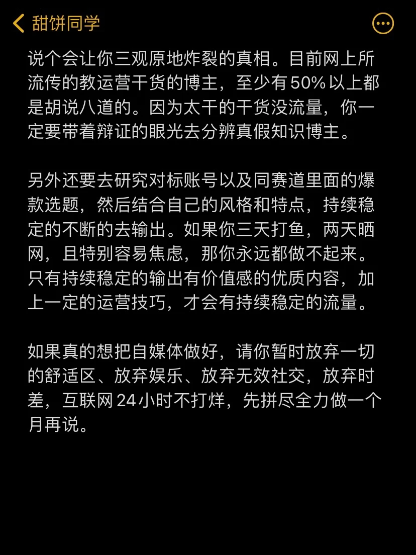 每天一个自媒体运营知识1️⃣5️⃣6️⃣ 都说自媒体博主收入高,我从业5年见过了太多博主,抛开那些头部的博主不说,绝大多数已经成型的博主,确实是比大多数工作的工资的收入要高,但是你做了这么久,到底变现了多少?今天我斗胆说些自媒体行业的内幕,也说说以后的自媒体应该怎么来做。