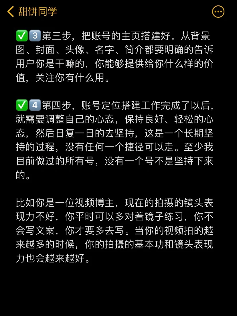 每天一个自媒体运营知识1️⃣8️⃣8️⃣ 做自媒体怎么迈出第一步?每一步的方法是什么?怎么开始去做一位自媒体?大部分人应该都是很迷茫,知道这是一个风口,但是根本不知道该怎么下手。那怎么把一个号做起来?怎么用正确的方法坚持,才能拿到结果呢?这条笔记给大家讲清楚,大家可以作为参考,希望对你有帮助。