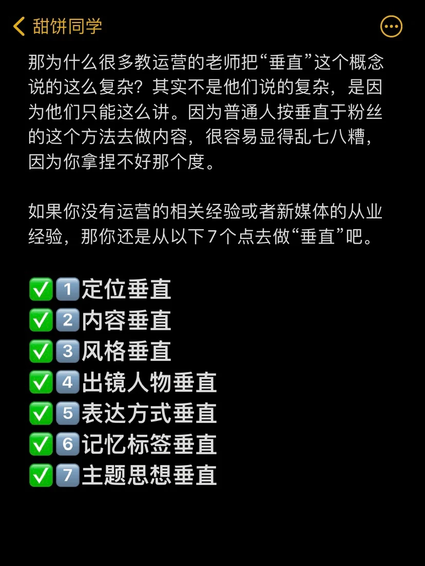 每天一个自媒体运营知识1️⃣8️⃣4️⃣ 我发现有很多博主误解了这个“垂直”的意思,有的人说“垂直”就是同一件衣服、同一个场景、同一个内容。