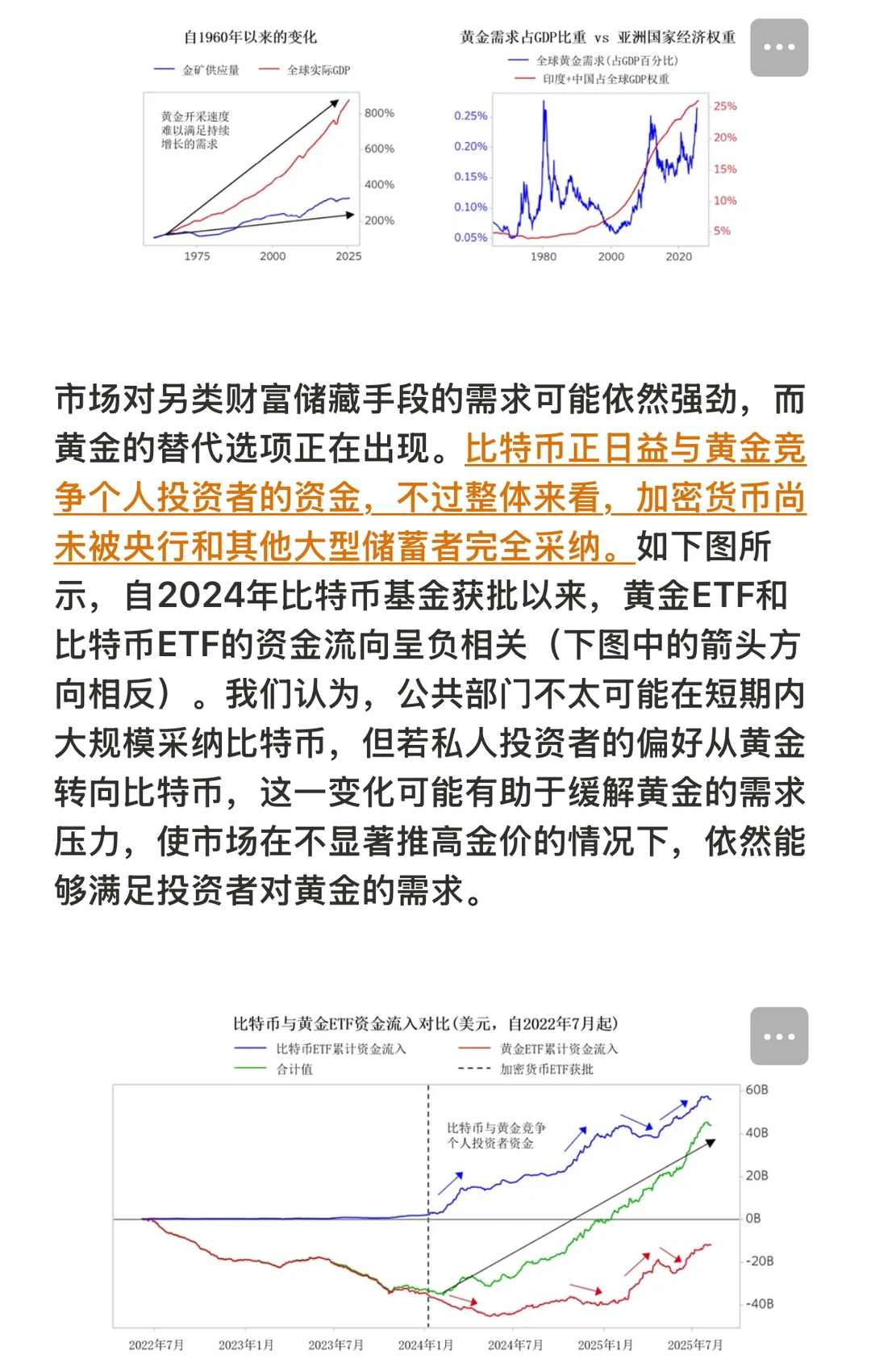 随着价格持续攀升,黄金也面临着一些新的风险。我们认为,比特币作为财富储藏手段的接受度在不断提升,这可能会分流部分个人投资者的资金,而这些资金原本可能因规避地缘政治冲突或货币贬值风险而流向黄金。此外,我们能观察到中国市场的黄金零售需求已显现出一定的过热迹象,预计进一步增长空间或将受限。
