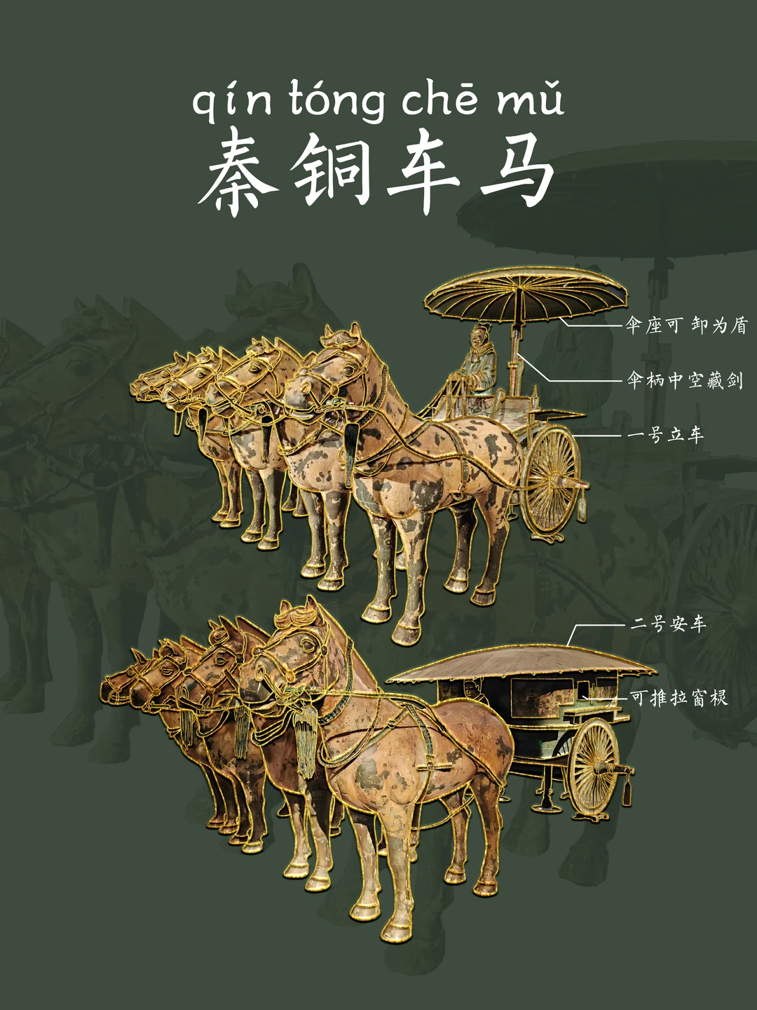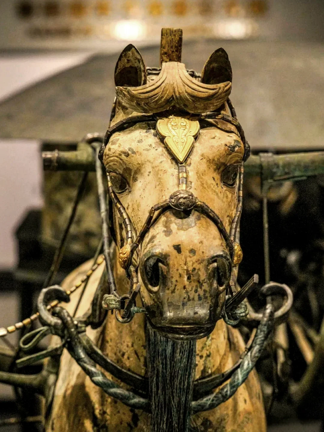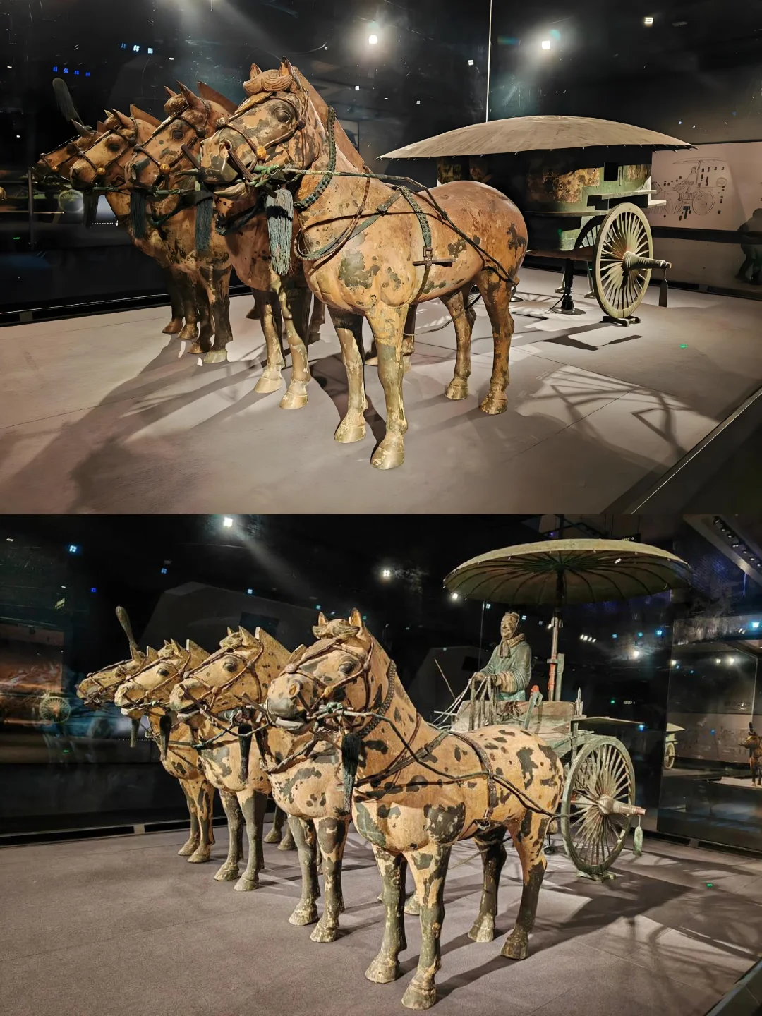 📍铜车马首次揭示了秦代皇家车制的完整形态:其精密度甚至超越同时期罗马青铜器,德国考古学家惊叹:“这是青铜时代的终极技术奇迹!”如今,两乘车马陈列于秦始皇帝陵博物院,静诉着大秦帝国“车同轨”的宏图,也见证了中国青铜时代的辉煌。