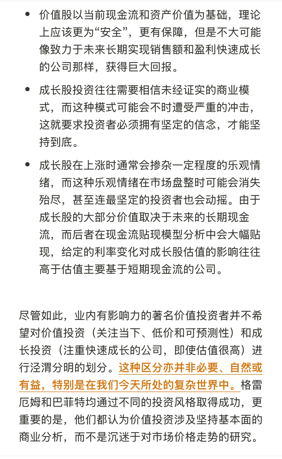 ▪️关于价值:价值投资者要认识到他们买入的证券不仅仅只是一纸文书,而是代表着实际企业的所有权 。这些金融工具具有基本的价值,并可能与令人焦躁的起起落落的市场报价 - 格雷厄姆将这种涨跌称之为 “市场先生”- 截然不同。如此一来,我们有机会以远低于其内在价值的价格获得股份或债券。这种操作需要独立的思想以及足够的定力来抵抗市场周期的情绪驱动,单纯根据价值作出决策。