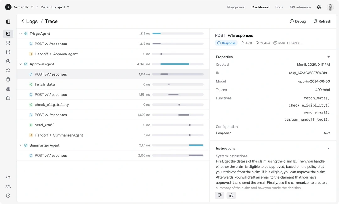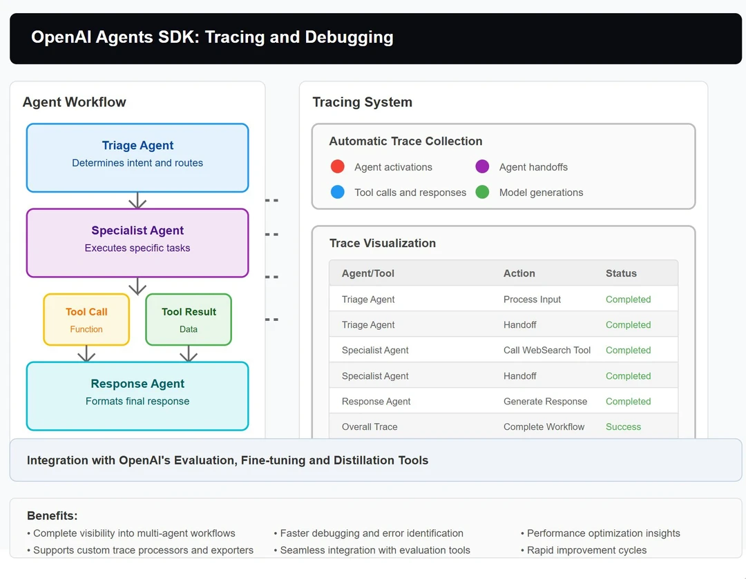▪️Agents SDK:革命性的框架,支持多个智能体的协同工作,还提供了完整的监控和调试工具(参考图片)。