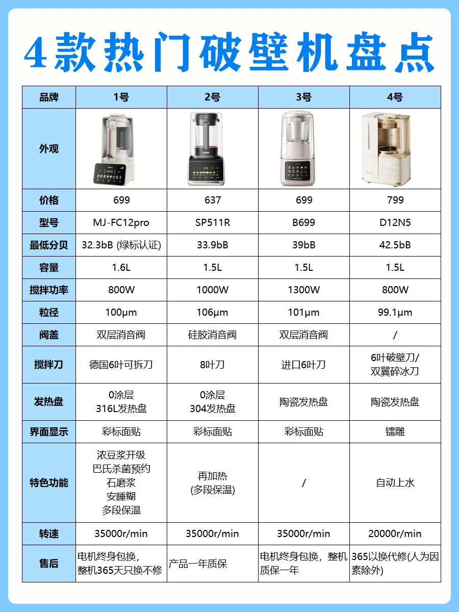 👉🏻对比了市面上热门了4款破壁机,大家可以根据需要选择~
