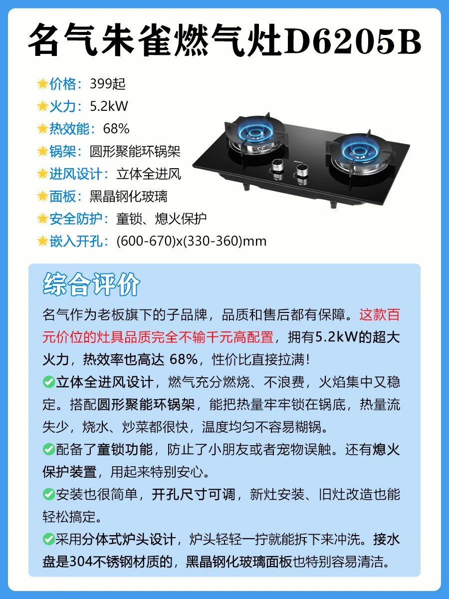 ✨对比了多款燃气灶,终于我挖到了一款宝藏产品~名气朱雀燃气灶D6205B~