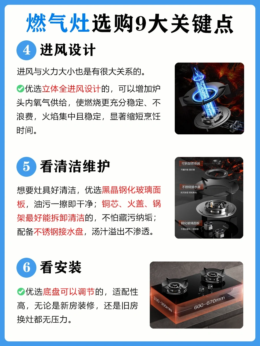 优选底盘可以调节的,适配性高,无论是新房装修还是旧房换灶都无压力。