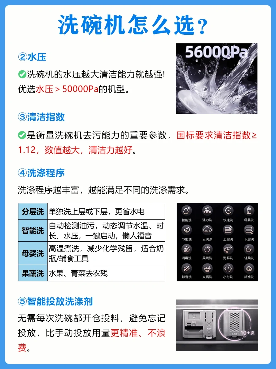 ✅有母婴洗、果蔬洗、智能洗、分层洗等16种清洁模式,智能投放洗碗液,非常省心。