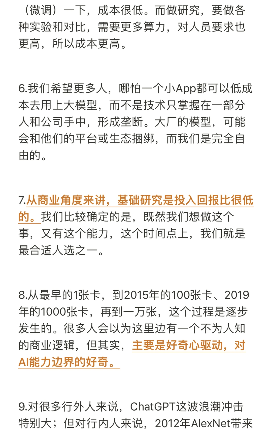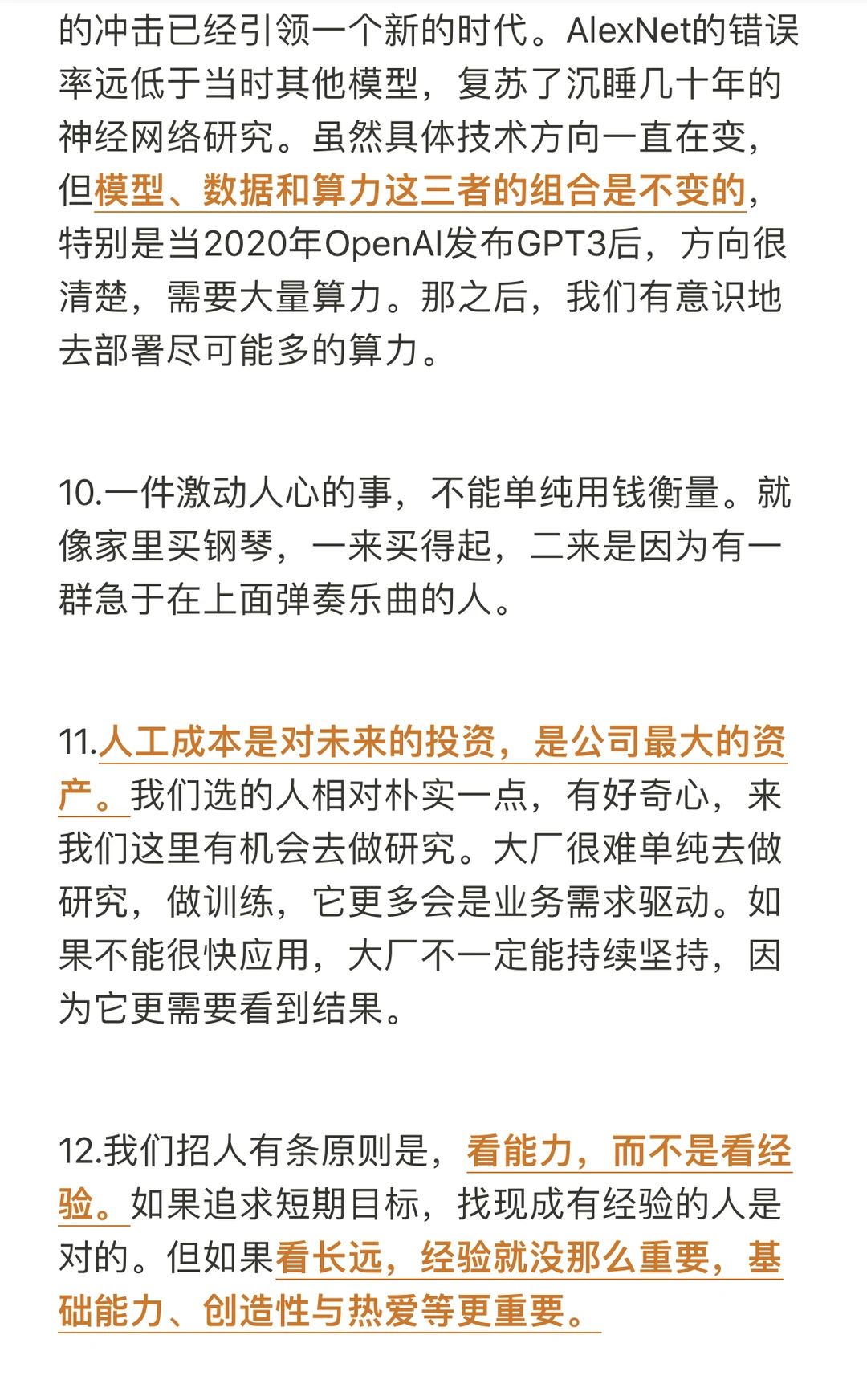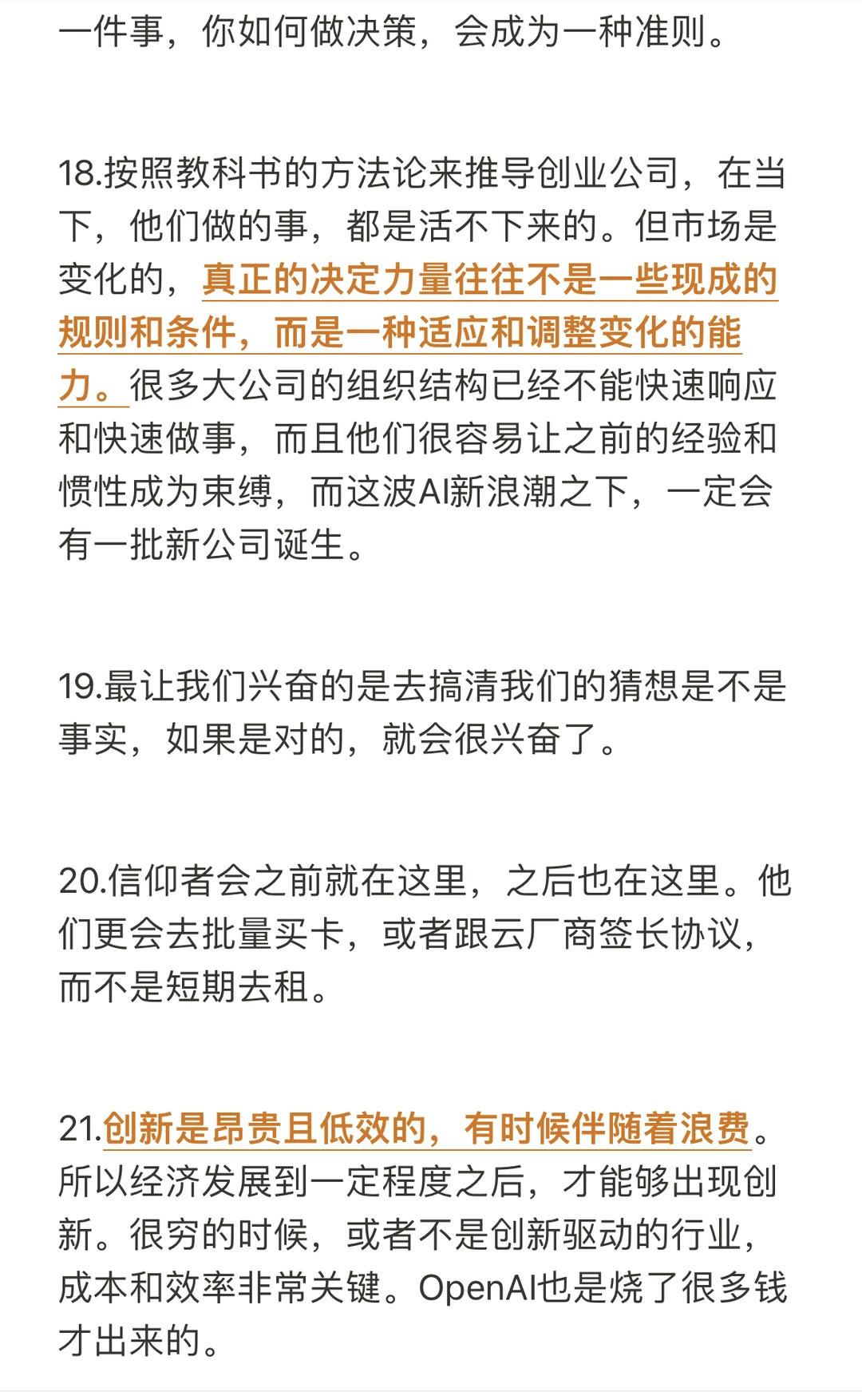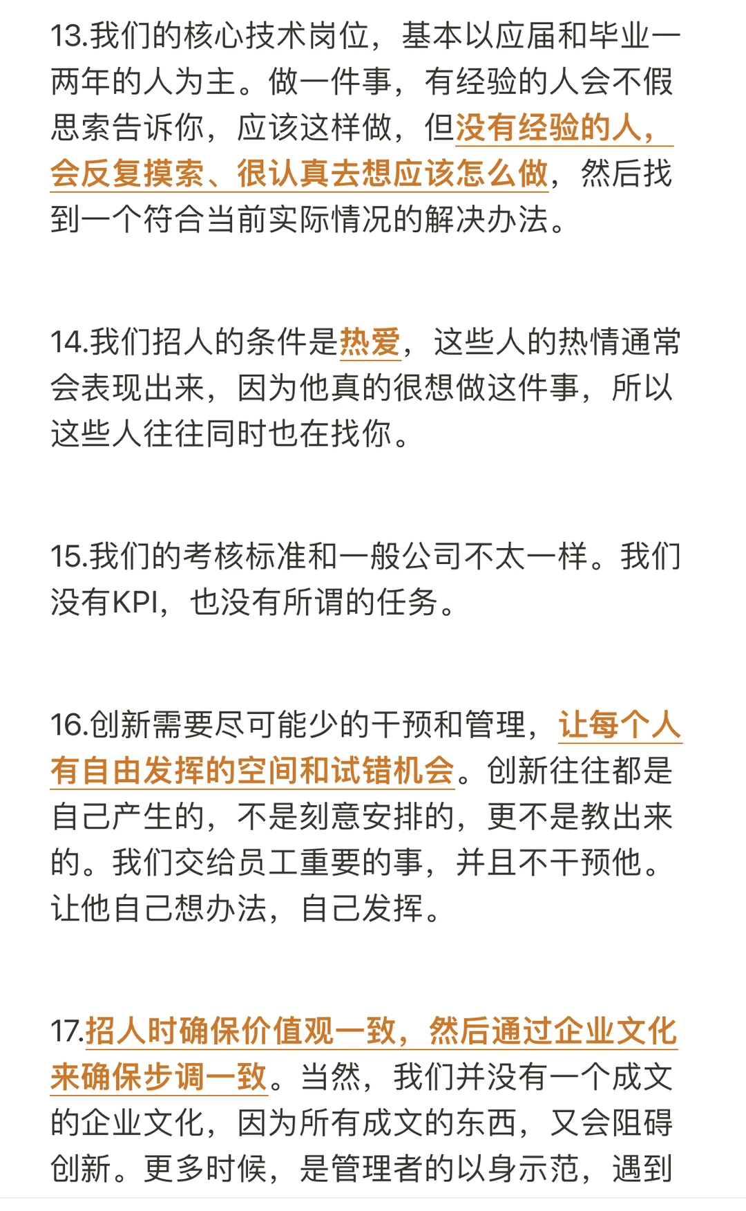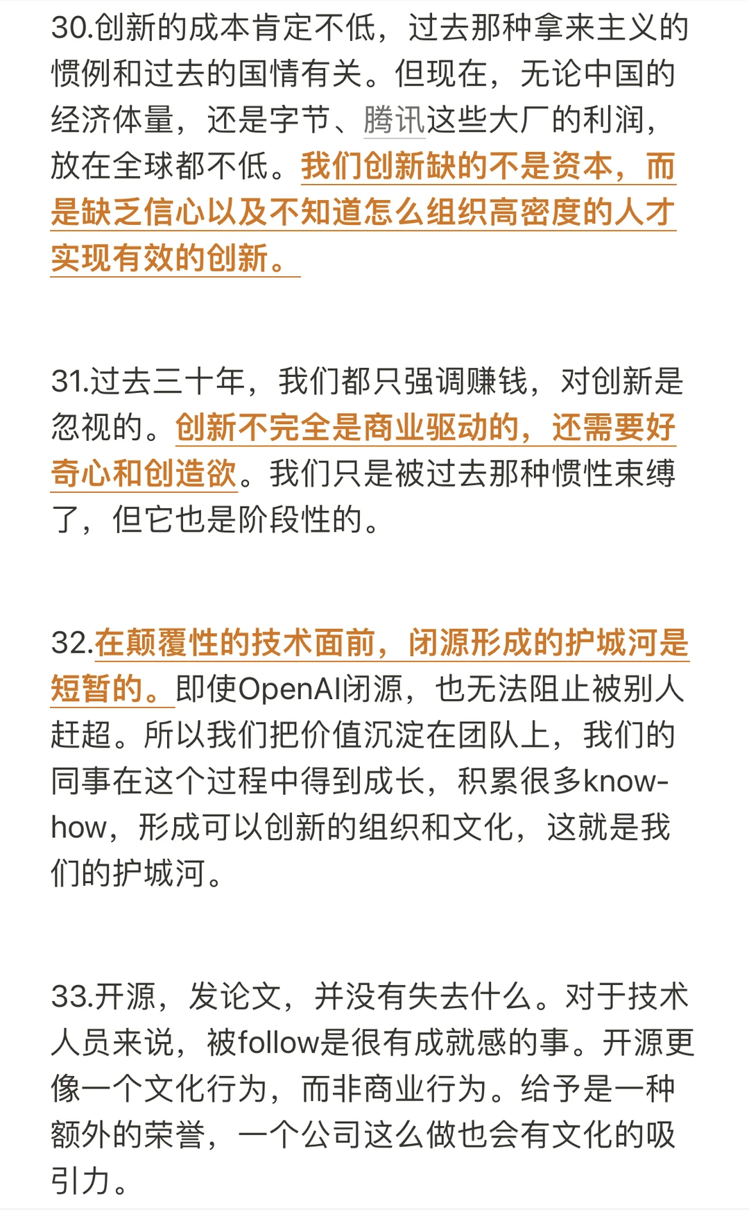 第二次读梁文峰的60条思考,感慨一流的人才永远都在改造物理世界,而这种改造不是盲目的,它建立在对于社会和技术发展阶段的深刻洞察,并在被时代选中的时候勇于站在台前,做难而正确的事情。没有汹涌的理想主义,只有平静务实的思考和做事。 好奇心,探索欲和创造欲,这些特质驱动的个人和组织成长,建立了DS技术创新的护城河。让我想起《中庸》的一句话:天命之谓性,率性之谓道,修道之谓教。 文锋大才。