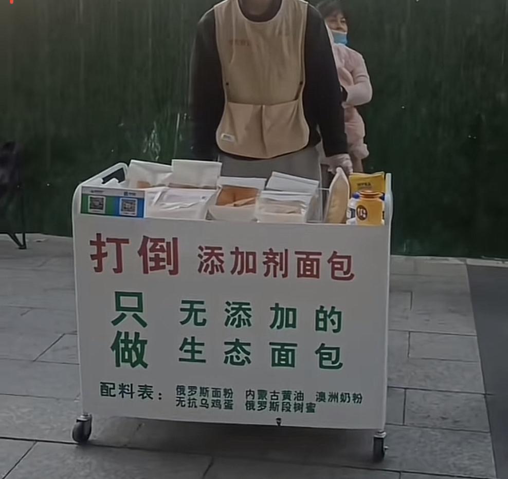 蜂蜜小面包狗都不吃,但干干巴巴的无添加剂生态面包狗抢着吃,拉踩这一块还得看这对创业小夫妻。起因是一对小夫妻花上万块买课拜师,学成后在蜂蜜小面包旁摆摊卖生态面包,强调说自己的面包没有任何添加剂,都是敢让顾客看见的食材,不像隔壁蜂蜜小面包的摊主,连配方都不敢公开。 说着还向众人展示了她的配料,比如:澳大利亚进口的奶粉、俄罗斯进口的面粉以及内蒙古酥油。然而很快就懂行的网友指出所谓澳大利亚进口的奶粉,她在澳大利亚6年都说没见过,后来网上搜了一下才知道是个杂牌;而俄罗斯进口的面粉是九块多的4斤的廉价面粉,拿内蒙古酥油当黄油使用。最后做出来的面包比大爷的棉拖鞋都干巴。 眼看蜂蜜小面包摊主生意爆棚,每天忙的没空搭理回应。她们又将目光投向了隔壁卷饼摊主,拿着手机跑到人家摊位前怼脸拍,得意洋洋表示自从她家面包摊来了之后,卷饼老板现在都不得不半价处理了。 在她新发布的一条视频里,她让流浪狗在他家的生态面包和蜂蜜小面包之间二选一,流浪狗叼走了生态面包,她立马哈哈大笑的说:“这只狗太会吃了,它把我们的生态面包吃去了,它闻了这个蜂蜜小面包,它不吃。”。 网友不语,只是一味的在评论区猛夸,表示想吃无添加剂面包找不到摊,要是有实体店就好了。