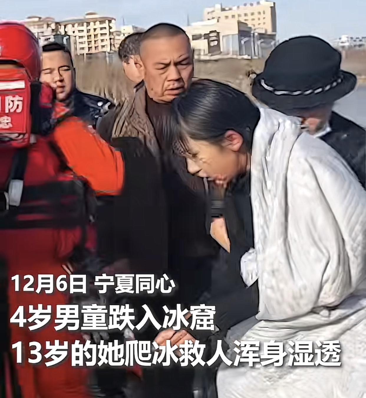 宁夏西爪不甜了,但她为宁夏添彩,谁说宁夏开不出玫瑰的? 12月6日下午3点,4岁男孩在御海湖薄冰上玩耍,冰面突然碎裂,孩子瞬间落进水里。因为冰面太薄,无法承受成年人的重量,岸边的大人只能急得团团转看着,不敢贸然上前。 就在此时,一个穿着校服,个头不高的初一女生李佳婷站了出来。她没有丝毫犹豫,接过旁人递来的塑料管,趴上冰面慢慢爬向冰窟,把管子塞进男童手里。 可就在这时,薄薄的冰面再次裂开,她自己也掉进刺骨的湖中。好在她的手紧紧的攥住管子没松手,直到消防员赶来将她和那4岁的男童救上来。上岸后女孩裹着毛毯,确认孩子没事后,便悄悄离开,连名字都没留下。 回家面对父亲看着她满身湿淋淋的,问她怎么回事,她也只是轻描淡写说是洒水车淋的。直到当晚当晚姑姑刷到救人视频,她才不得不将整件事一五一十的告诉家人,这时一家人才知道自己的女儿在下午不声不响的干了这么一件大事,事后父亲既后怕又自豪,叮嘱她救人要先确保安全。 13岁的她不会游泳,没受过救援训练,却凭本能选择了最危险的担当。用她瘦小的身躯在冰湖中托起了一个生命,也托起了人间的温暖与勇气。英雄不论年龄,善意照亮寒冬。